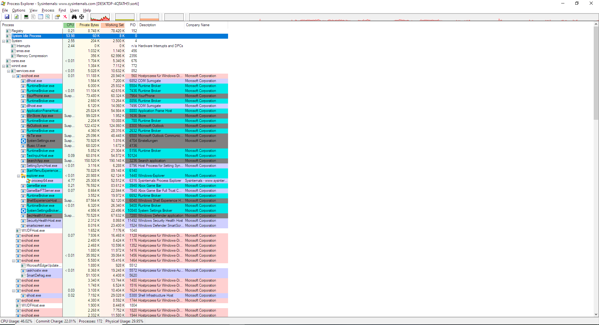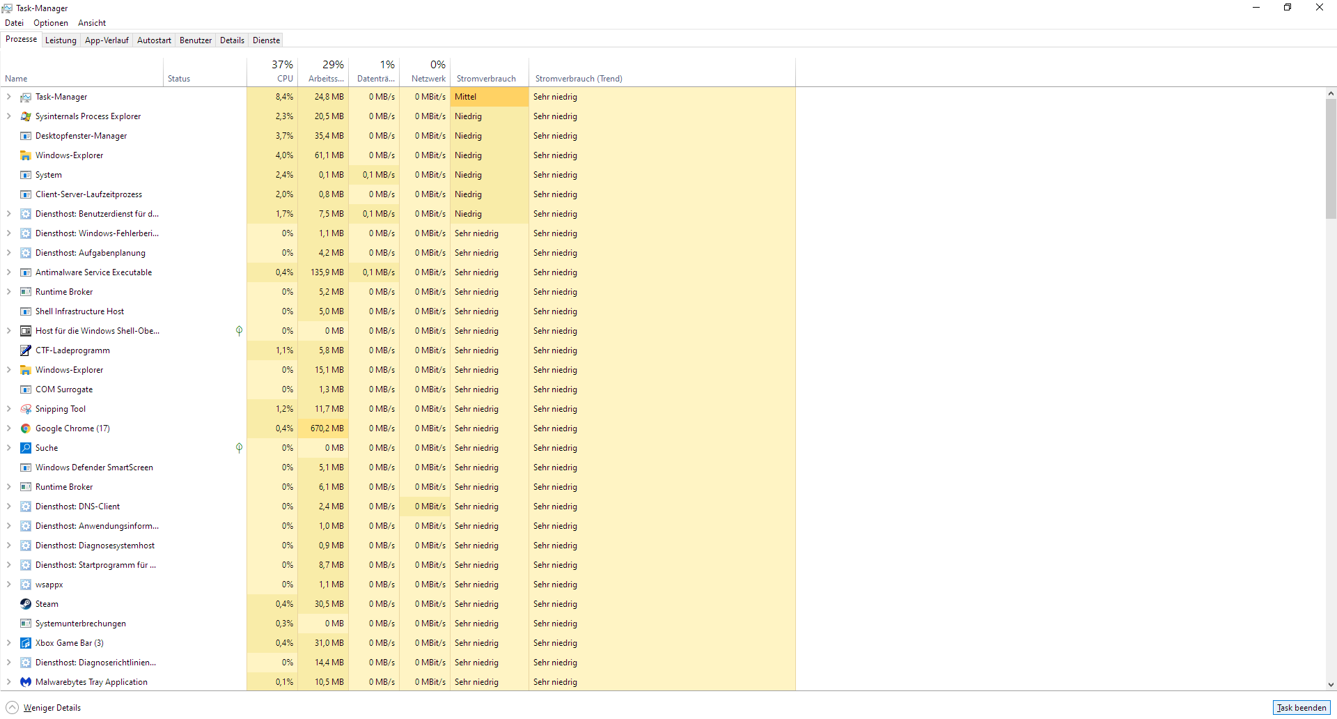 Seit ein Paar Tagen steigt die CPU-Last von Windows bei den einfachsten Aufgaben (Mail,Systemprozesse,Chrome) direkt auf 70-80%, wenns zwei sind sind die 100% CPU Auslastung schnell erreicht. Was ich nicht ganz verstehe, vor ein Paar Tagen konnte ich mit den selben Aufgaben nicht mal an den 20-30% CPU-Last kratzen. Dabei steigt die Last manchmal, wenn überhaupt nichts läuft auf 100% im Systemleerlauf, was davor auch nie passierte.