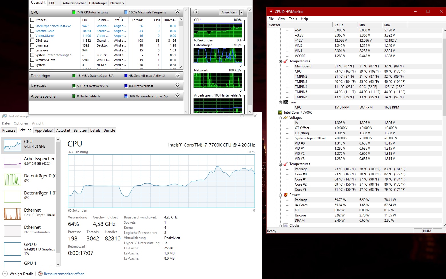 Wenn ich jetzt GTAV starte gibt es alle ~5sek einen ruckler, was vorher nie der Fall war. GTA lief vor 3 Tagen (mit den selben Pc Specs) noch 1A ohne ruckler und 'geringer' CPU + GPU auslastung..