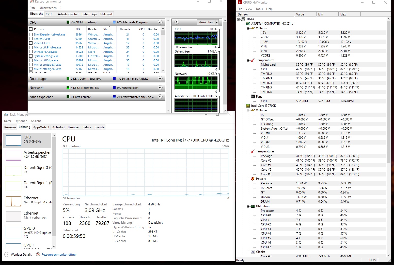 Zur Hardware: i7 - 7700k , GPU GTX 1070 , 16GB DDR4 RAM und auch meine Lüfter drehen sich gut und erzeugen einen guten 'Airflow' (kein Luftstau).