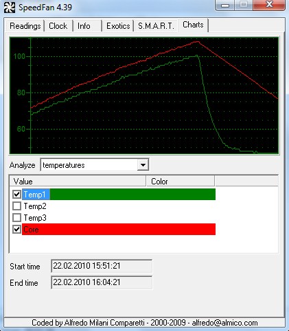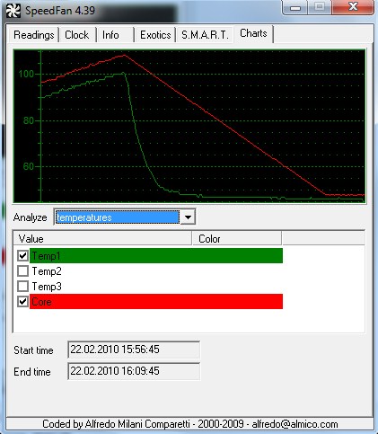 angehängt ist der temperaturverlauf nachdem ich die lüfter wieder eingeschaltet habe. ist das normal dass die eine temp so linear abfällt?