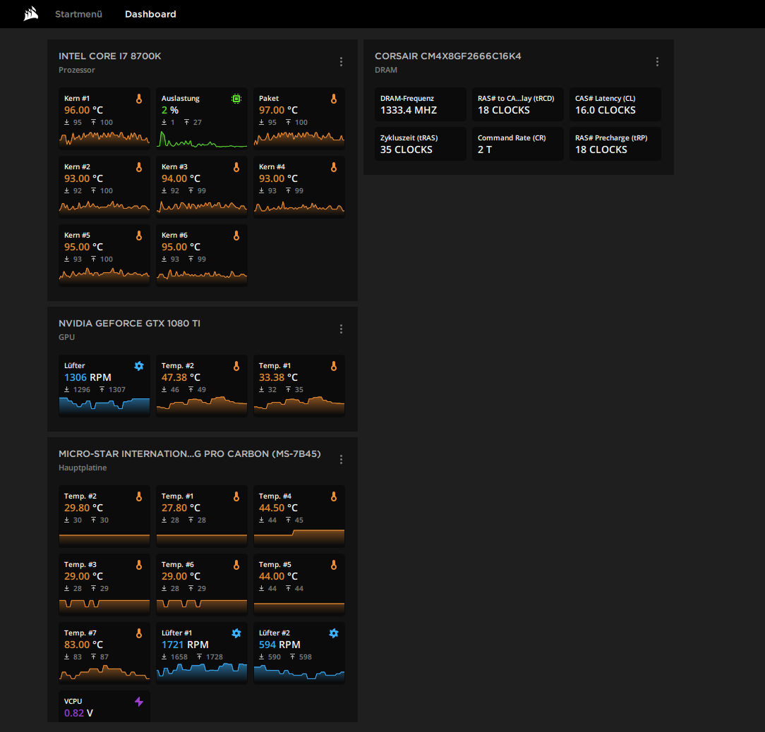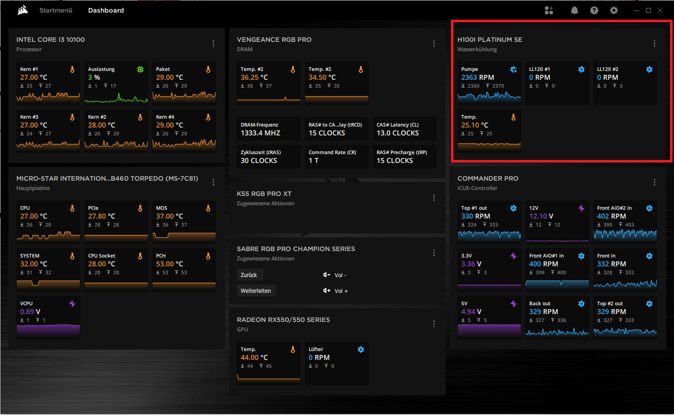 Hay mein Problem ist das meine CPU viel zu heiß ist (ca.100 Grad) bei kaum Auslastung (5%). Ich habe schon die Kühlpaste ausgetauscht und den PC auch schon neu aufgesetzt. Im BIOS hab ich jetzt gesehen das meine CPU Wasserkühlung bei 0 RPM ist was sich aber auch nicht ändern lässt bzw weiß ich nicht wie.
