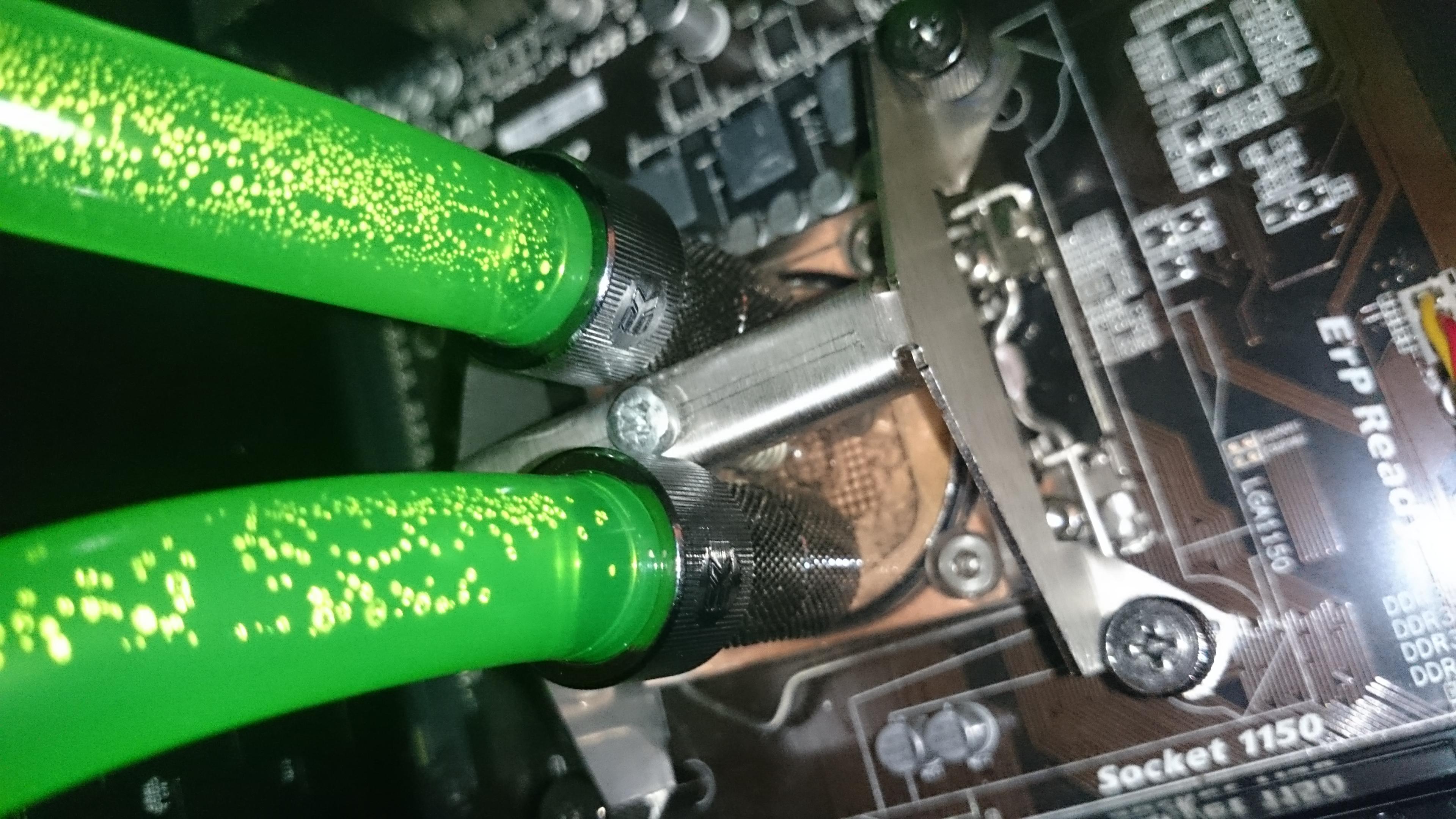 man sieht sieht doch eindeutig das in den Schläuchen und am CPU Block Luftblasen sind, eine Wasserkühlung kühl mit Wasser und nicht mit luft darum die schlechte Kühlleistung, Entlüften bis keine Blasen mehr im Wasserkreislauf sind !!!
