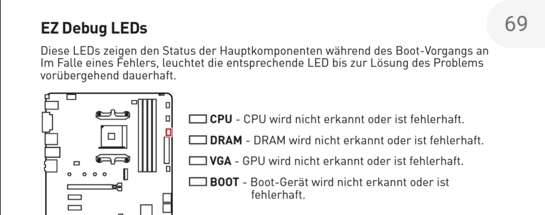 Heute habe ich das Netzteil meines Rechners gewechselt auf das Straight Power 11 650 Watt. Der Rechner läuft, aber leider leuchtet die CPU debug LED dauerhaft rot. Ob sie das vorher schon getan hat, kann ich nicht genau sagen. Der Rechner läuft ja, daher wäre es mir eventuell auch nicht aufgefallen.