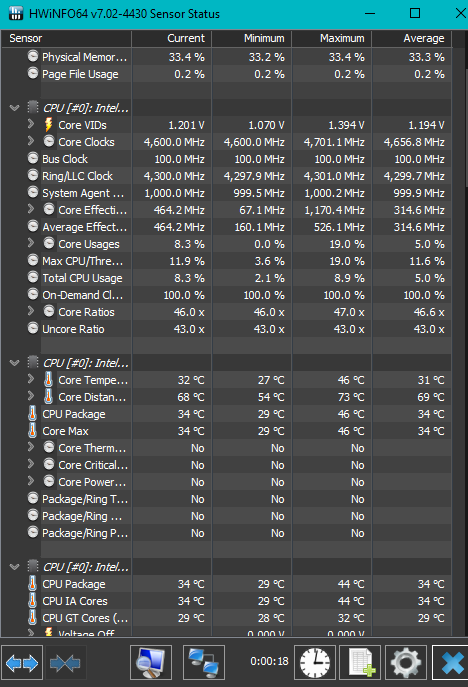 Na dann haste irgendwas im BIOS rumgefuscht. In dem Screenshot von HWinfo sieht man den Eintrag "CPUPackagePower". Dieser Wert steht auf über 100 Watt. Die CPU ist aber nur mit 65 Watt TPD spezifiziert und läuft somit, warum auch immer, weit außerhalb der Spezifikation. Mit Deinem Kühlerchen sind die Temperaturen dann erklärbar. Falls Du die -K- Variante hast, dann nimm die ggf. vorhandene Überaktung zurück und begrenze die TDP im BIOS, falls das bei einem Z370 Board geht.