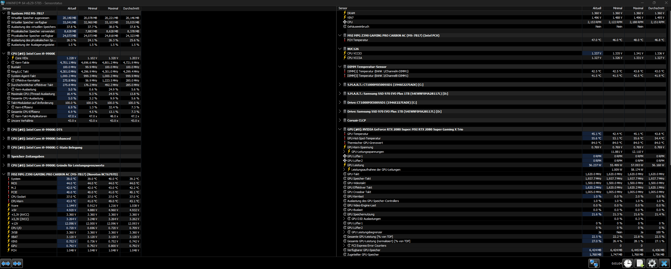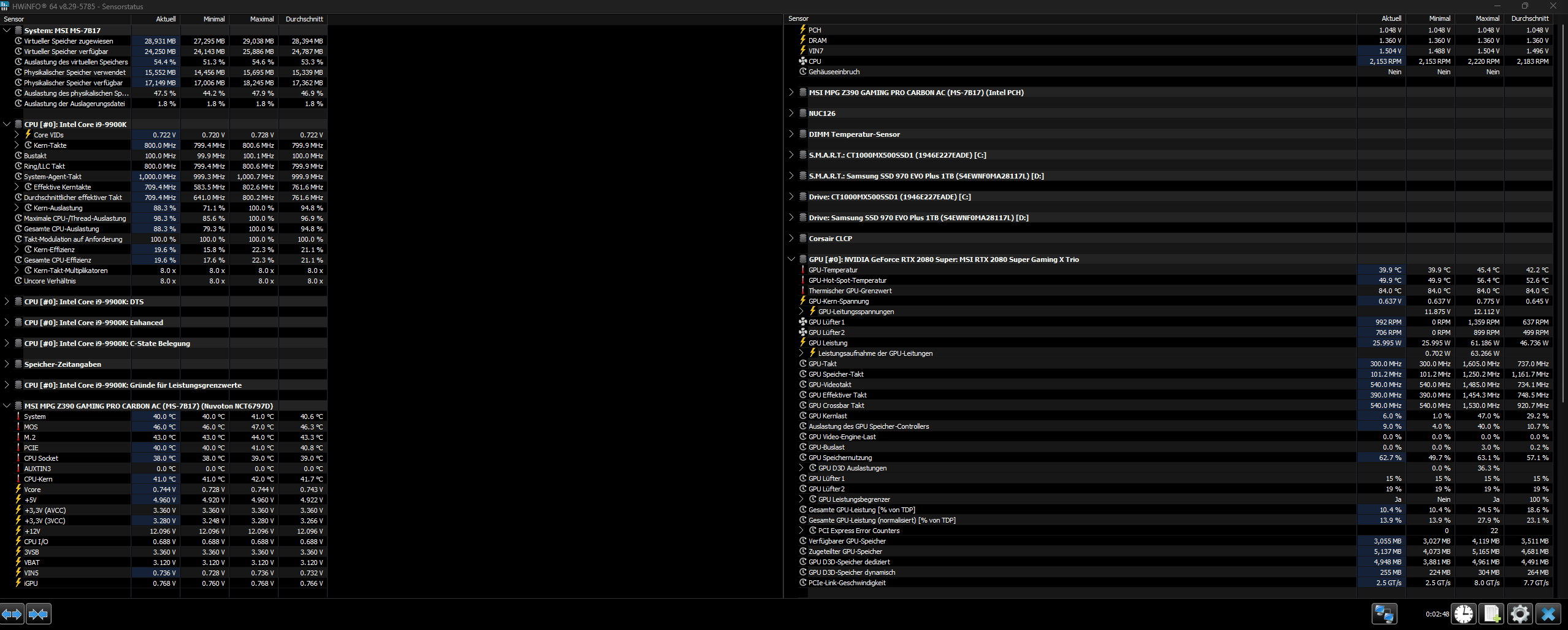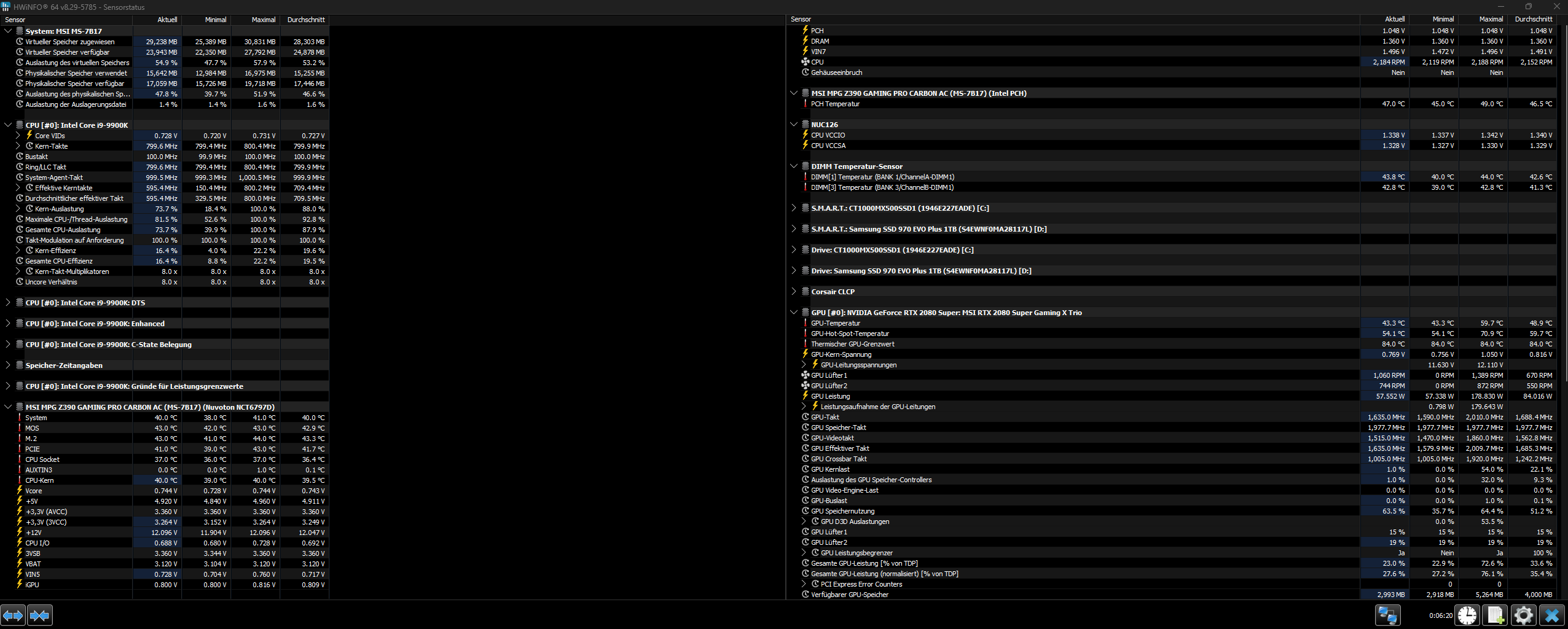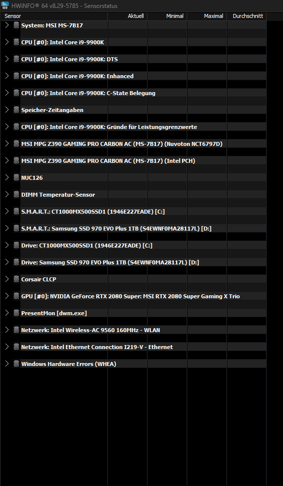 UIch weiß etwas Besseres: Nimm HWiNFO, blende über dorigen Reiter die unwichtigen Komponenen aus (Datenträger, Netzwerk usw.), sodass nur noch CPU, RAM, Mainboard (dafür gibt 's zumeist mehrere Rubriken) und Grafikkarte anzeigen.
