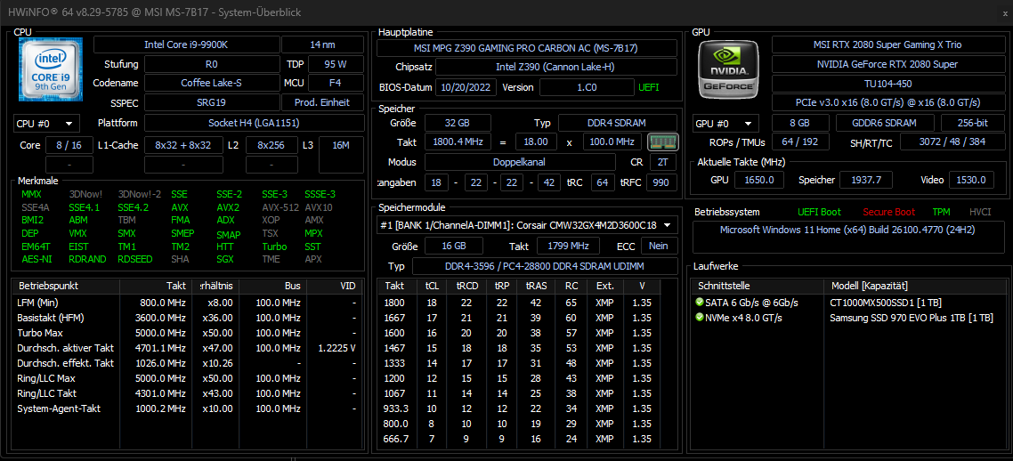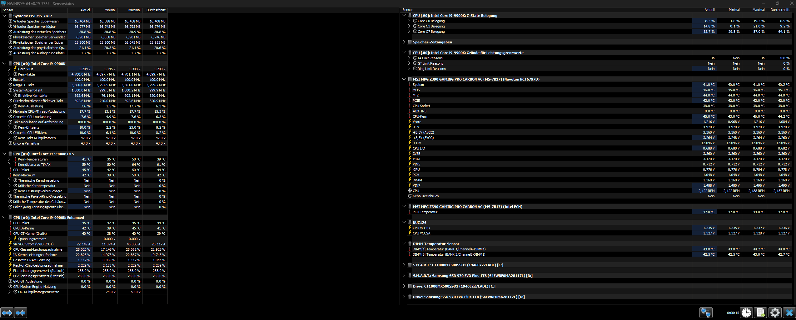 Starte das Game und setzt erst, nachdem das Game gestartet ist, die Werte auf Null zurück (unteres Uhr-Symbol) und zocke bis der Arzt kommt. Erfasse in kurzen Zeitabständien Screenshots von HWiNFO und poste sie hier.