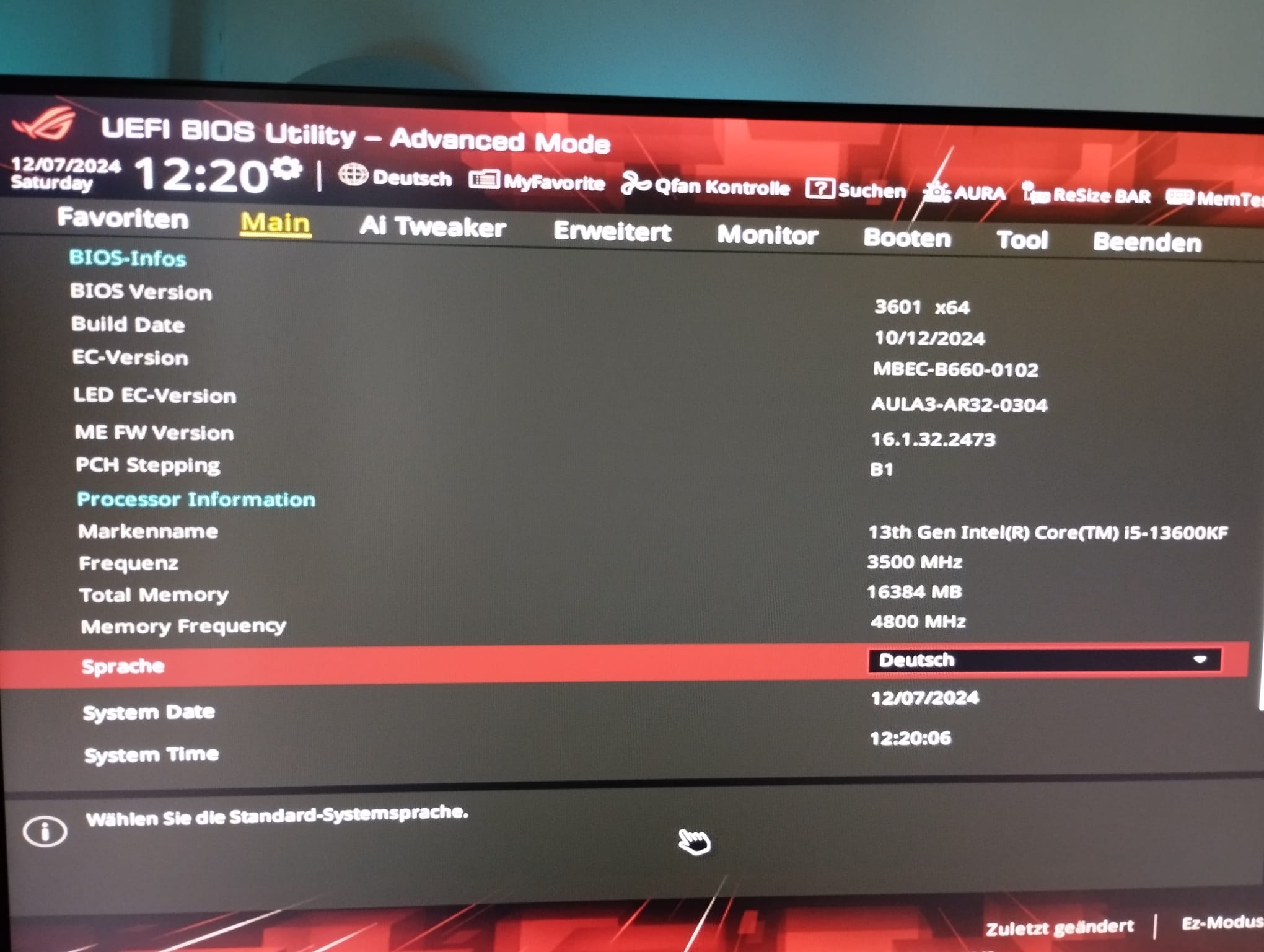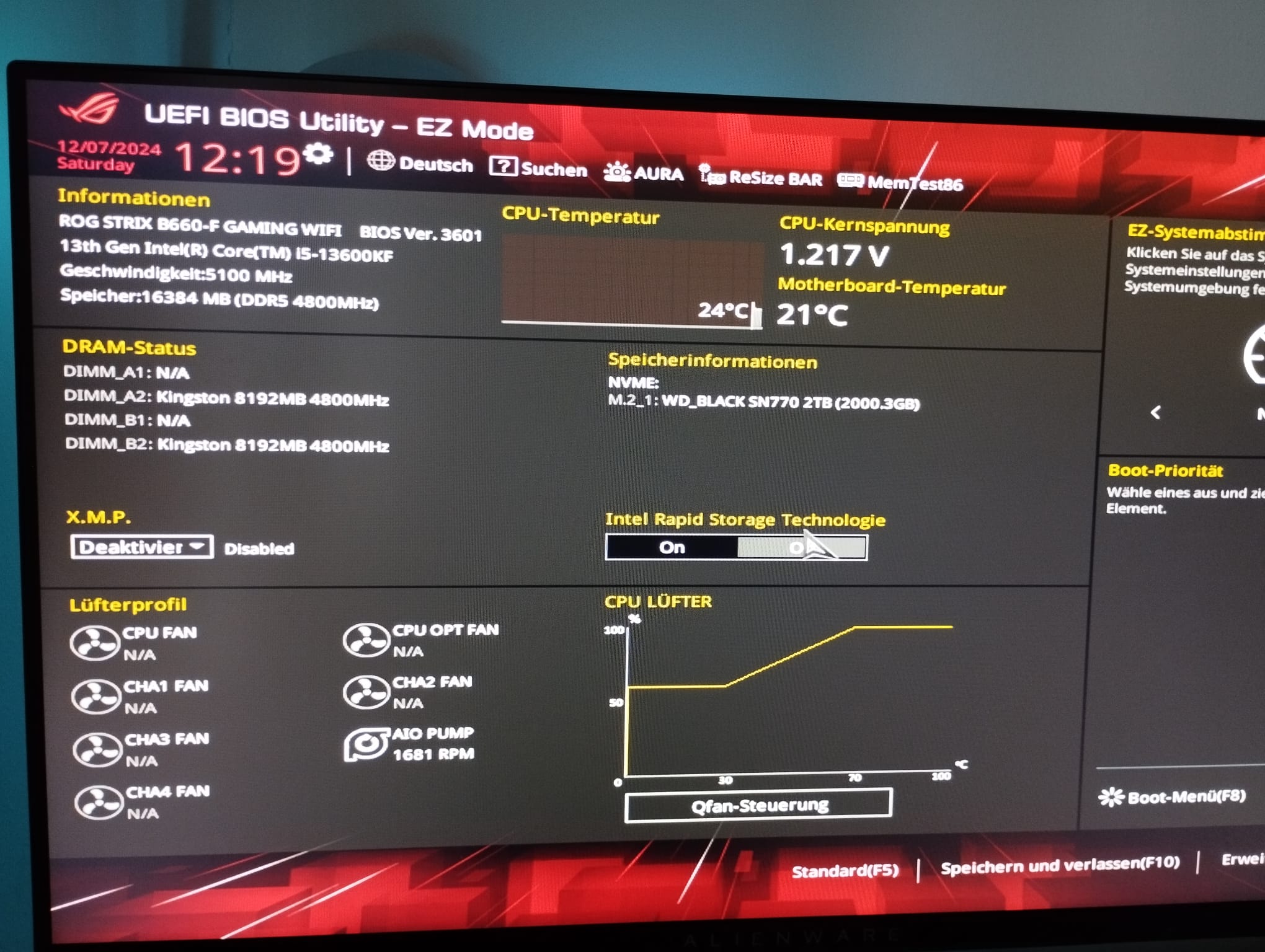 Mainboard: ROG STRIX B660-F Gaming WIFI BIOS Ver. 3601