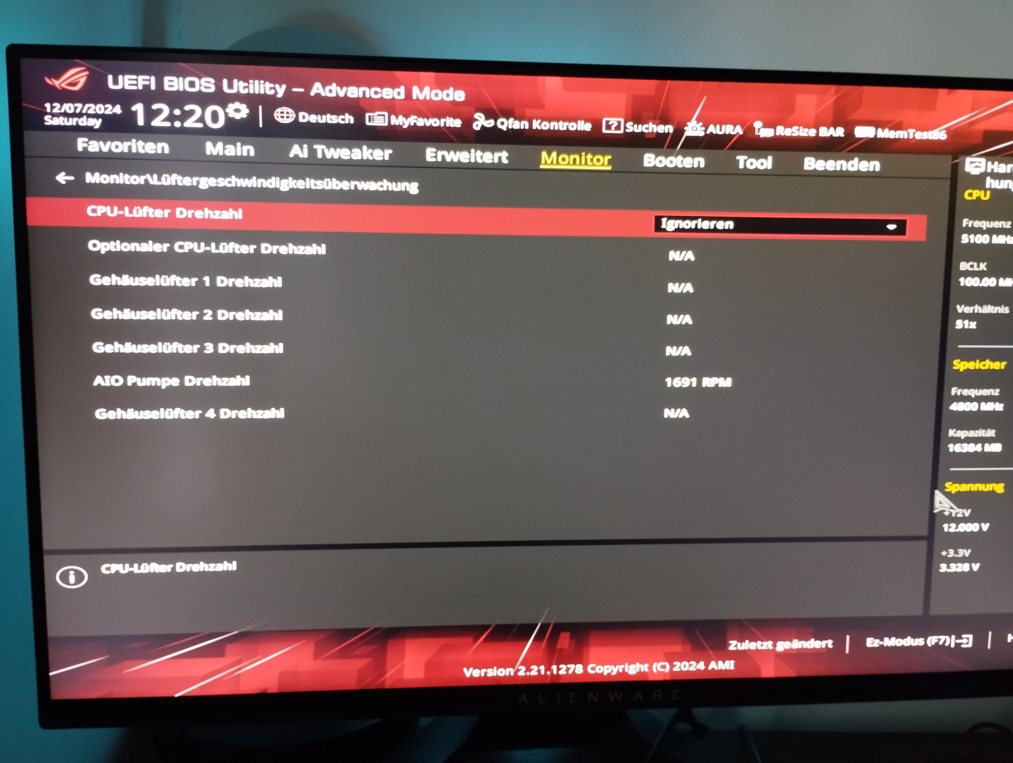 Ich habe wie in anderen Themen beschrieben die CPU-Lüfter auf Ignore gesetzt (Siehe Anlage 2)