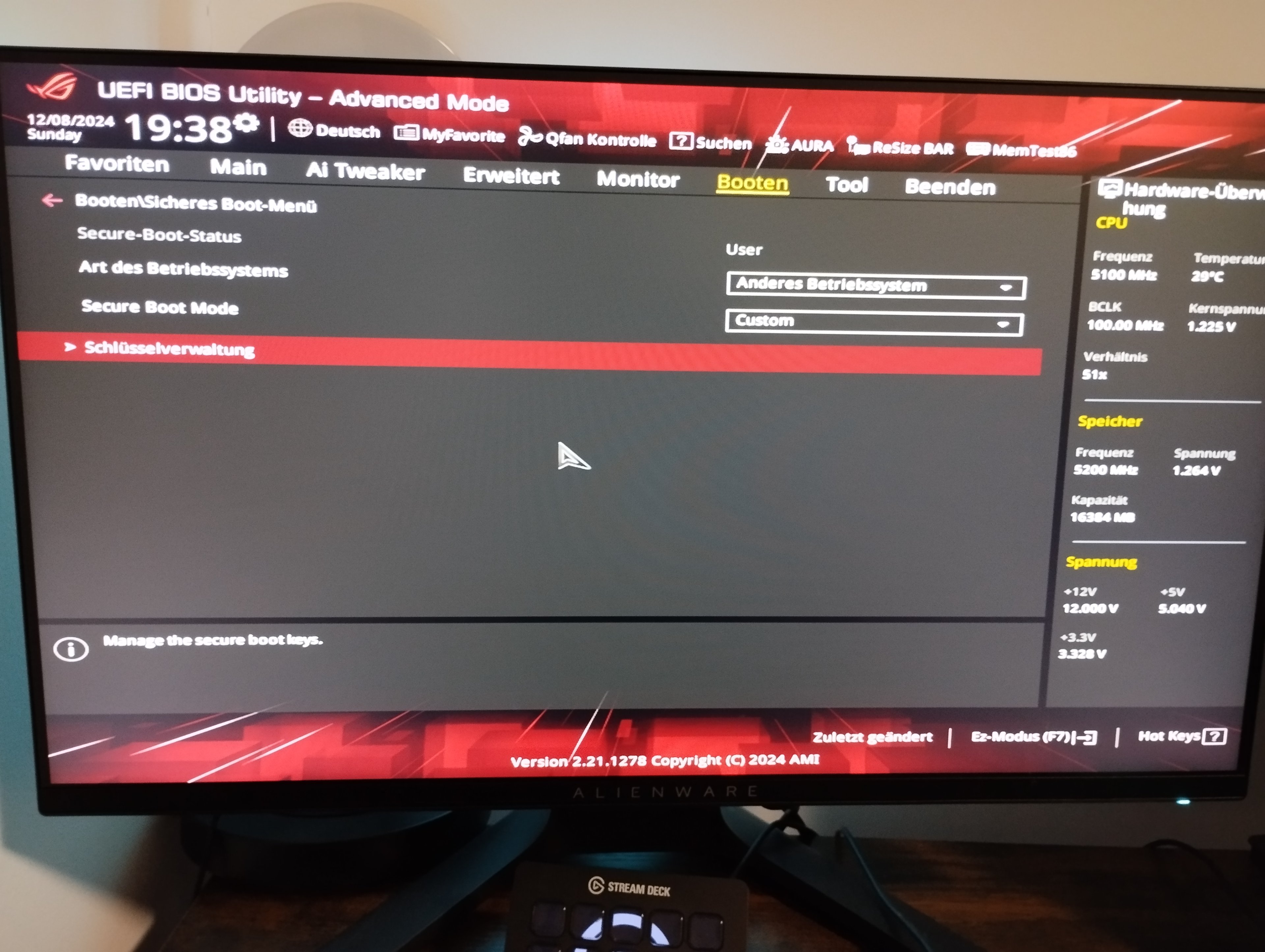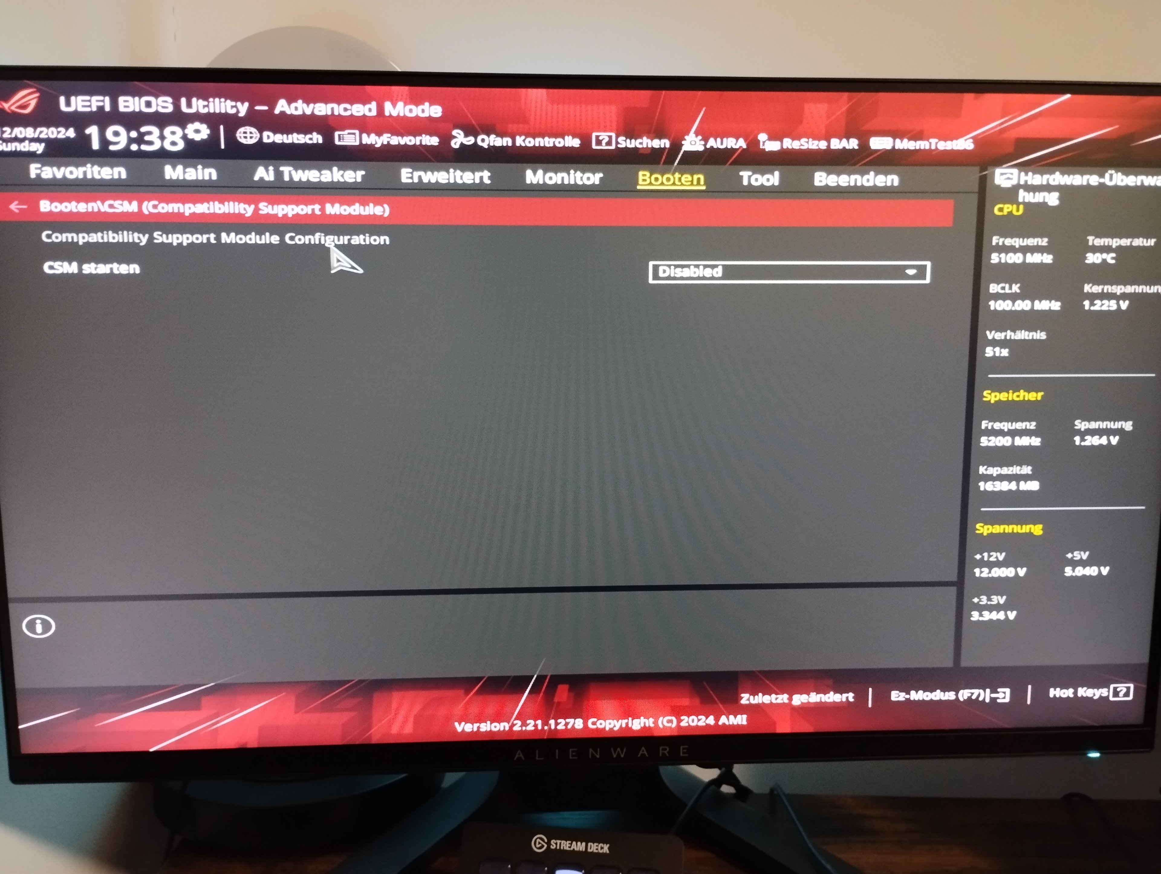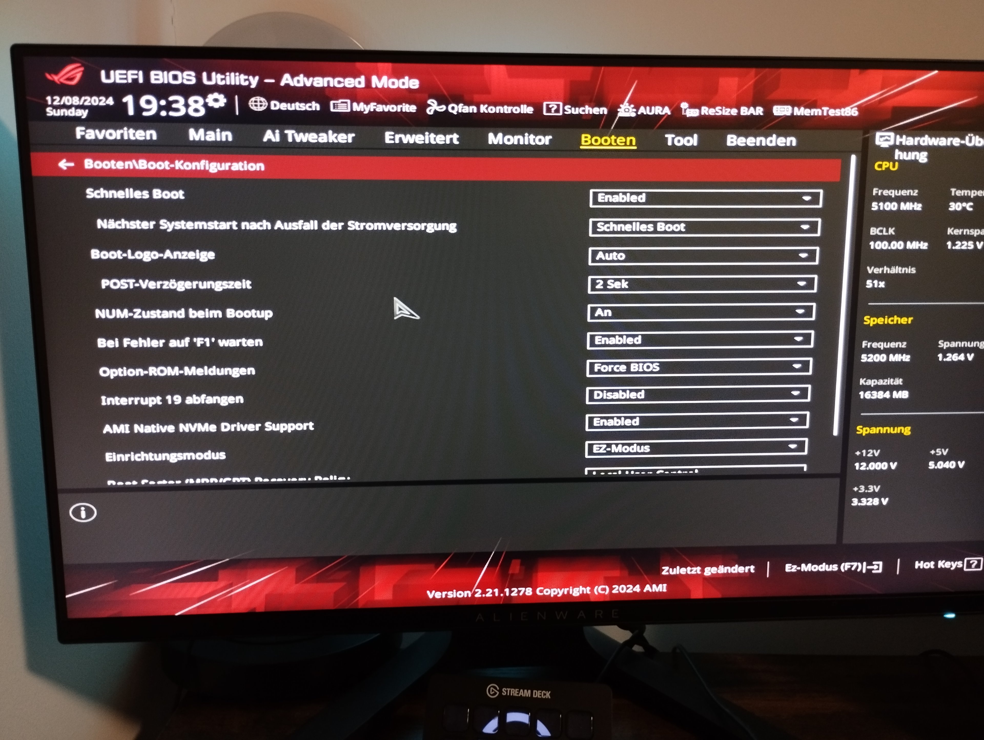 Seitdem kommt auch diese Fehlermeldung nicht mehr; doch es startet direkt das Bios und man kommt nicht weiter.