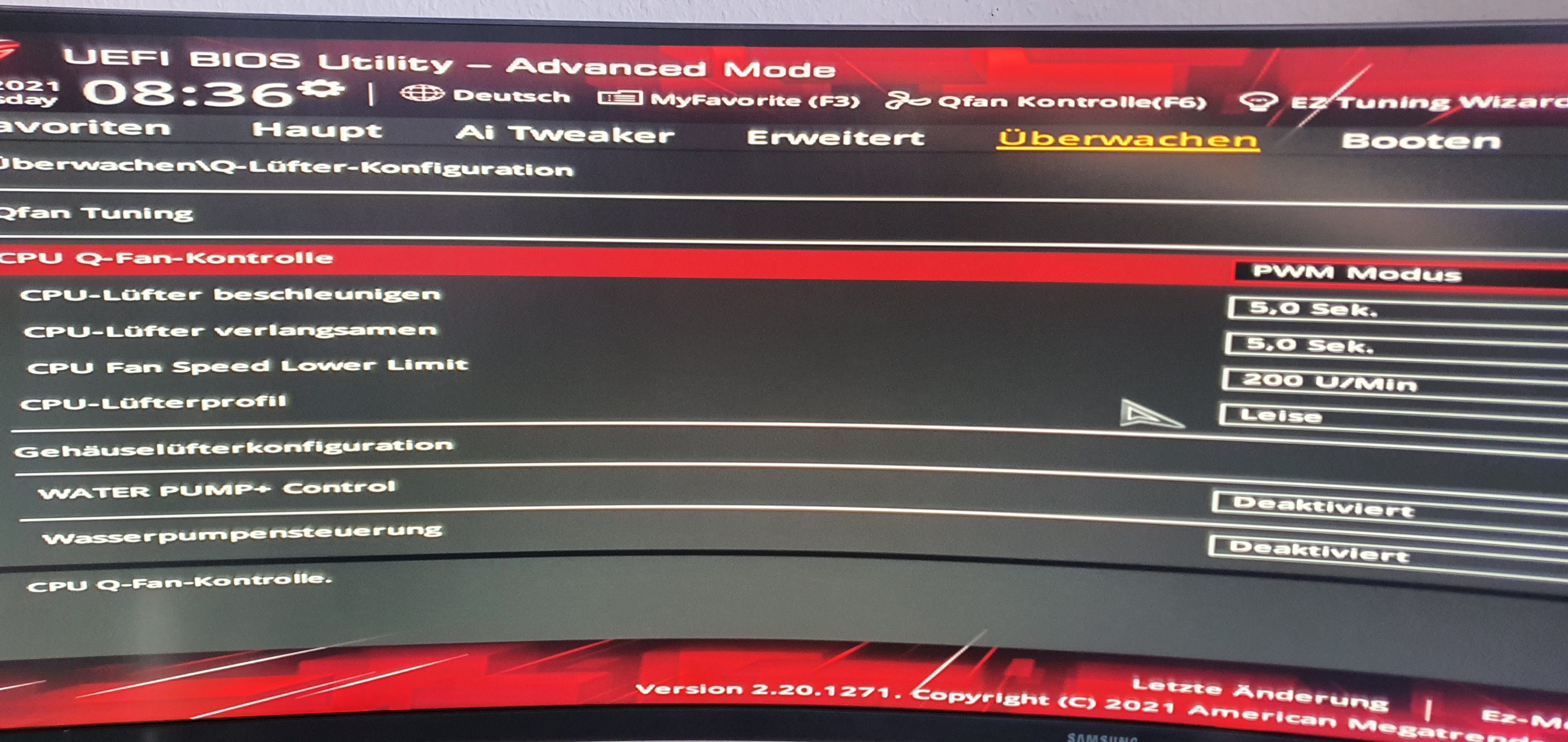 In Armoury Crate kann ich Lüfterkurven zur Aio einstellen.