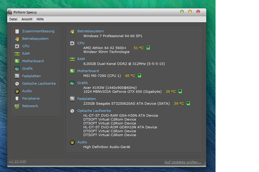 ich hab insgesamt 4 GB RAM. und das Mainboard ist ca. 5 Jahre , wenn nicht 6, alt. Ich bin leider gerade im Büro und nicht zu Hause. Wenn ich zu Hause bin mache ich eine Auflistung meines Systems.