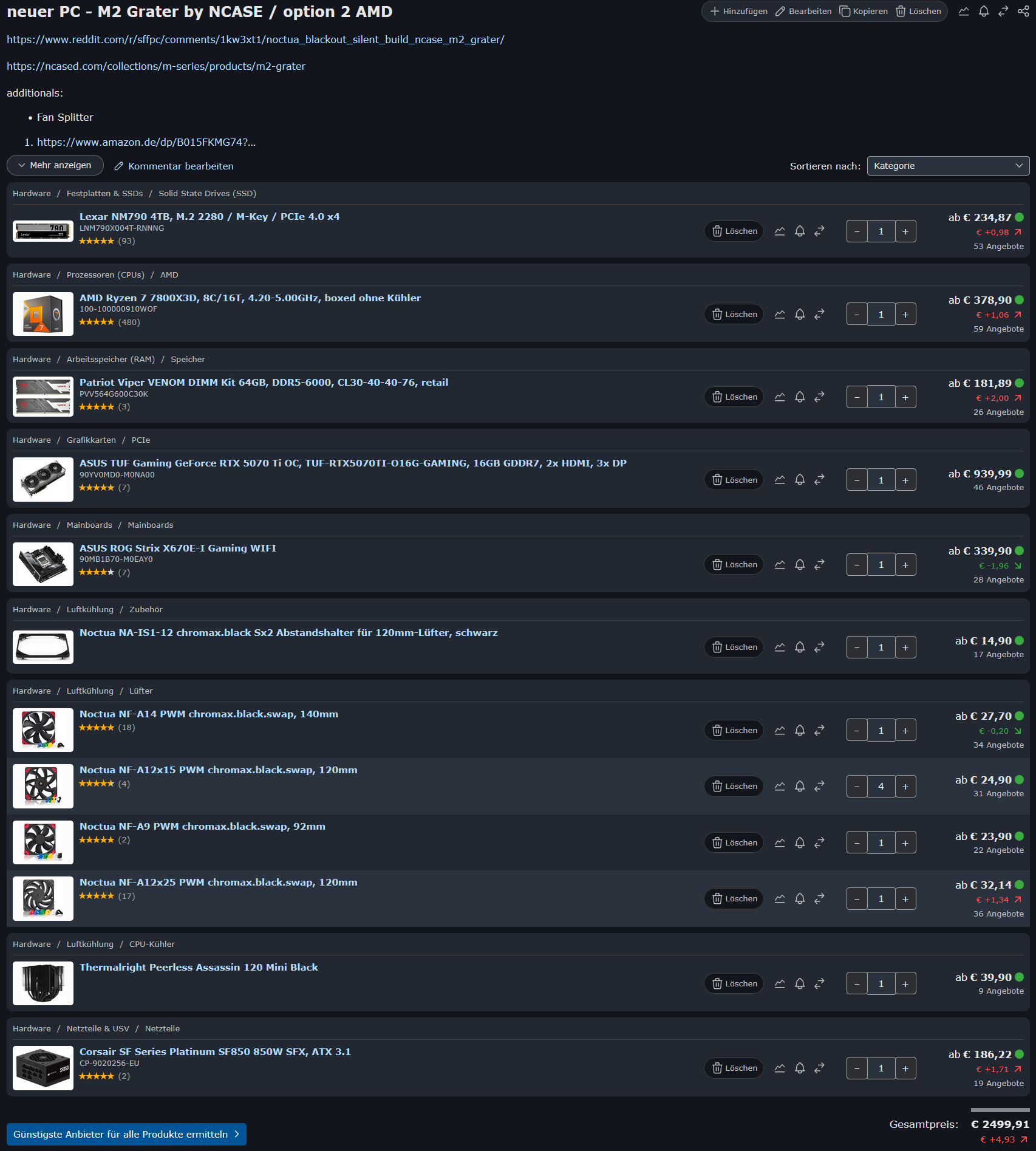 Quicksync bräuchtest du mit ner Blackwell-karte nicht unbedingt, das Noctua-Fest halte ich auch für vergeudetes Geld. Es gibt auch deutich günstigere gute Lüfter. Die erwähnten Arctic P12 z.B.