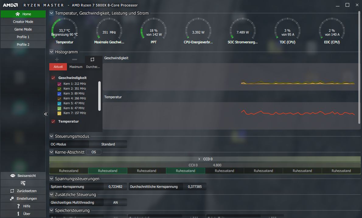 was ich überhaupt nicht verstehe ist der hohe verbrauch im idle und das alle Tools bis auf Rayzen Master eine Hohe Frequenz anzeigen.