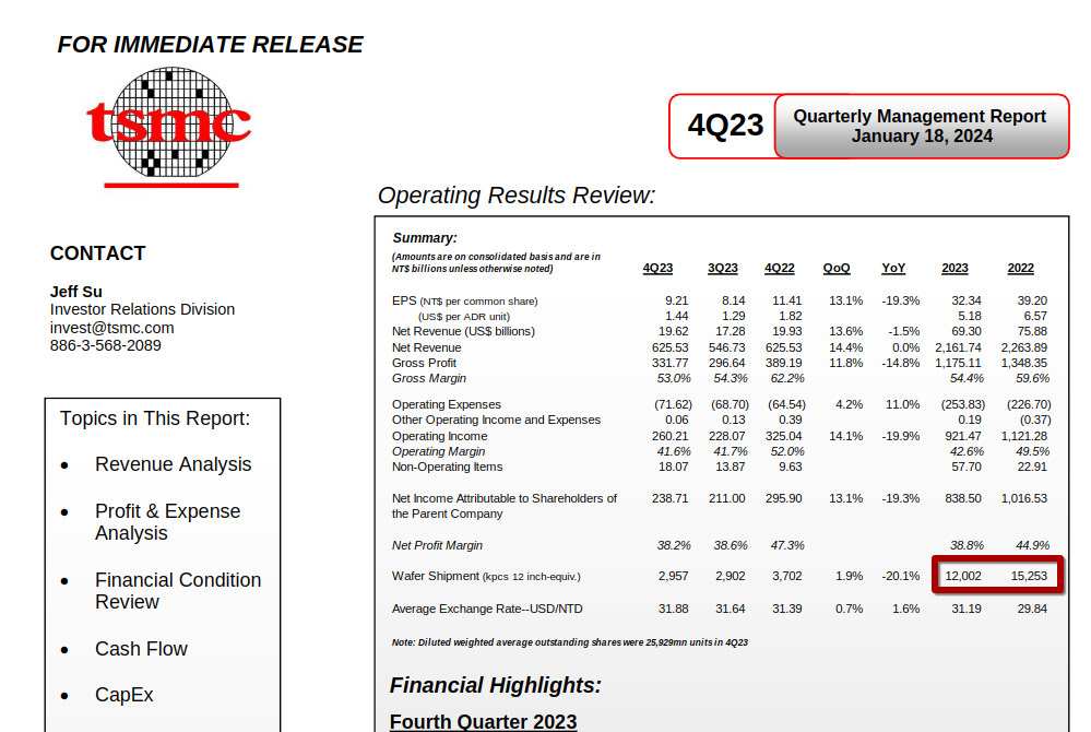Der neu hinzugekommene Umsatz mit den teuren 3 nm Wafern konnte den zurück gehenden Umsatz mit den anderen Nodes nicht kompensieren.