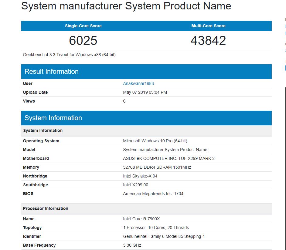 Ist halt auch eine Frage, mit welchem Takt gebencht wurde, gegen meinen i5 8600K wird es dann auch schwer im Single Core Score zu bestehen, aber selbst den Multi-Score finde ich jetzt nicht so berauschend, wenn man bedenkt das der i9 10900X ein 10 Kerner ist mit 20 Threads. Mein kleiner i5 8600K hat ja nur 6 Kerne und 6 Threads, aber dafür schlägt dieser sich ganz wacker!Eddyloveland schrieb:Also ich weiß ja nicht was ich von diesem Geekbench halten soll aber wenn ich dagegen meinen 7900x halte mit bissel Oc kann die neue Skylake nicht so besonders schnell sein . Anhang anzeigen 822793