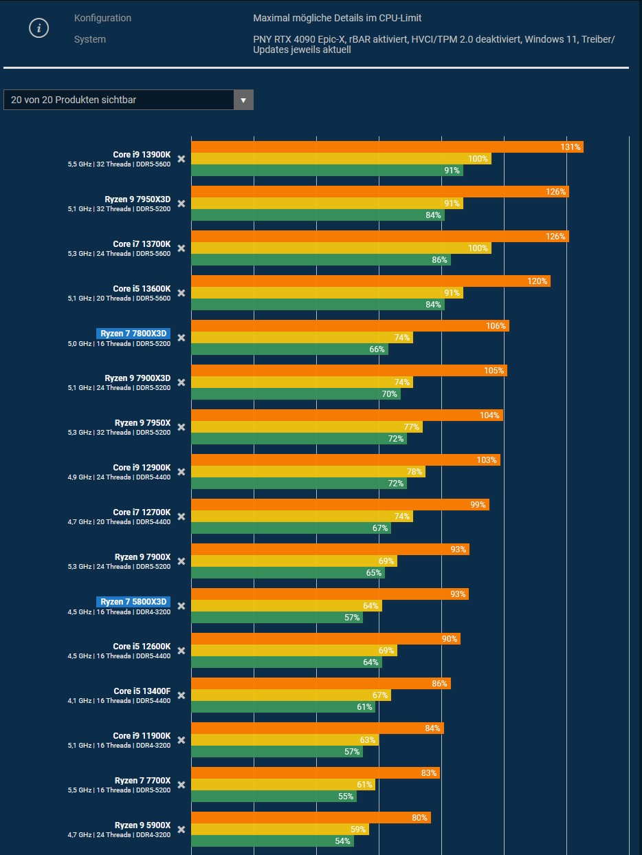 Erst mit "Du kannst es dir nicht leisten" und dann Benchmarks heraussuchen, wo mal ein 7800x3d geschlagen wird, btw --> Bei Techspot ist der 7800x3d vorne, auch in CP2077, wieso wohl? :-)