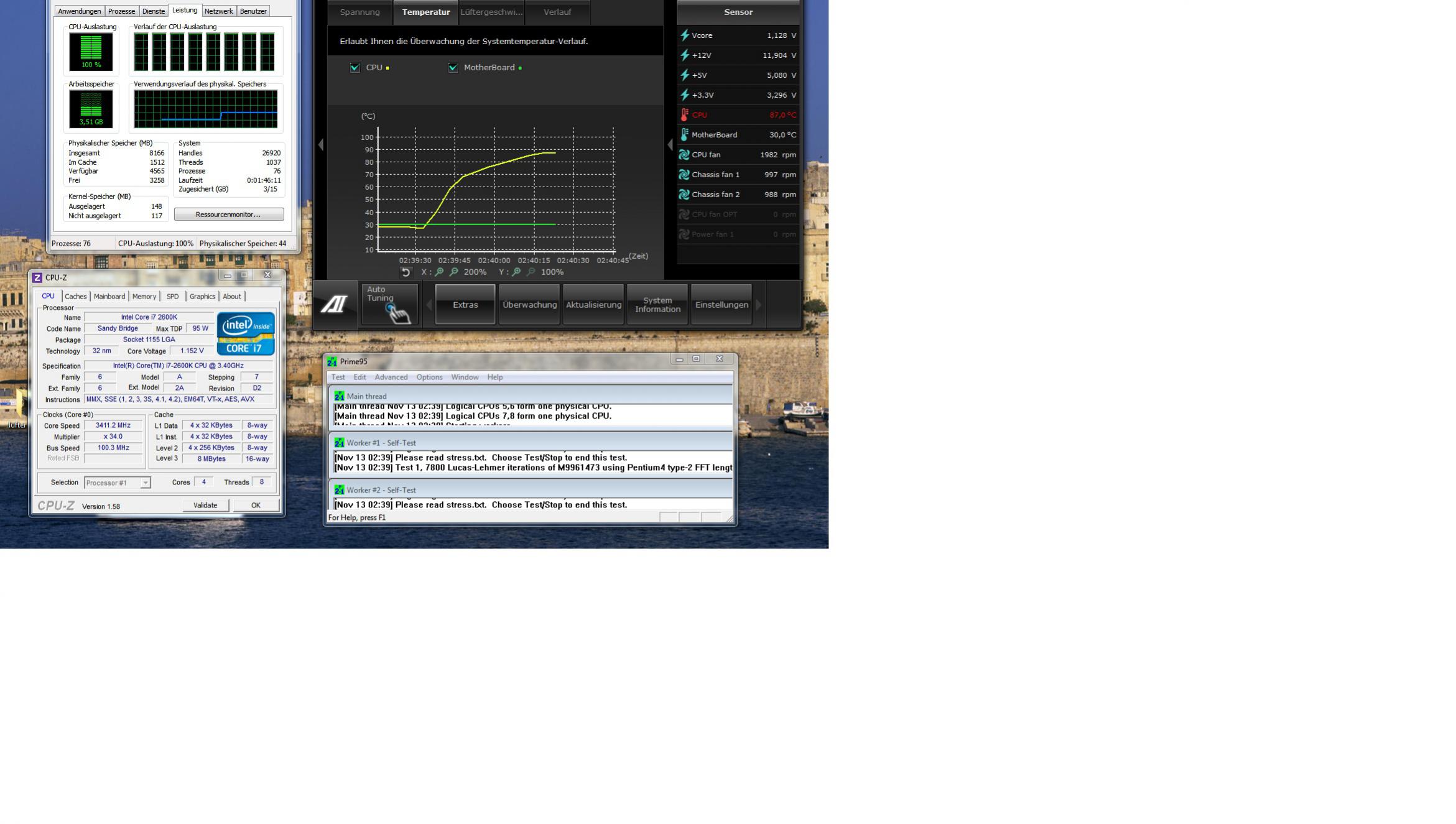 Alle nachfolgenden Stresstests oder Battlefield 3 Tests sind alle auf 3,4 GHz gelaufen.