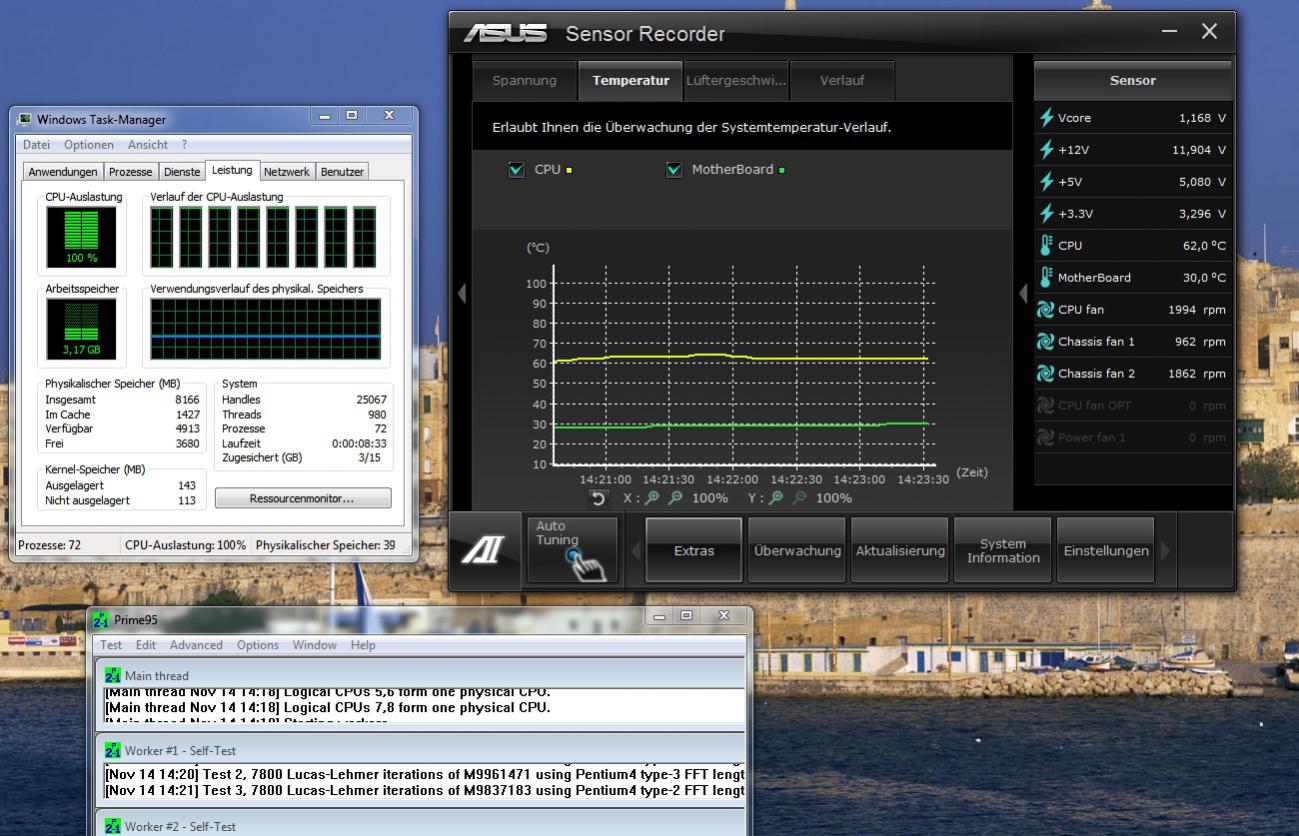 Nach dem Einbau und den Testen, wurde ich denoch positiv überrascht: last 55°C bei 3,8GHz und 1,2 VCore.