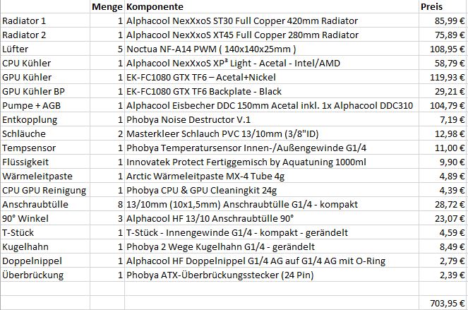 ich plane in nächster Zeit meine vorhandene be quiet! AiO Wasserkühlung gegen eine Custom Wasserkühlung zu ersetzen, da mir die Geräusche der Pumpe mächtig auf die Nerven gehen und ich gerne selbst mal eine Wasserkühlung einbauen möchte