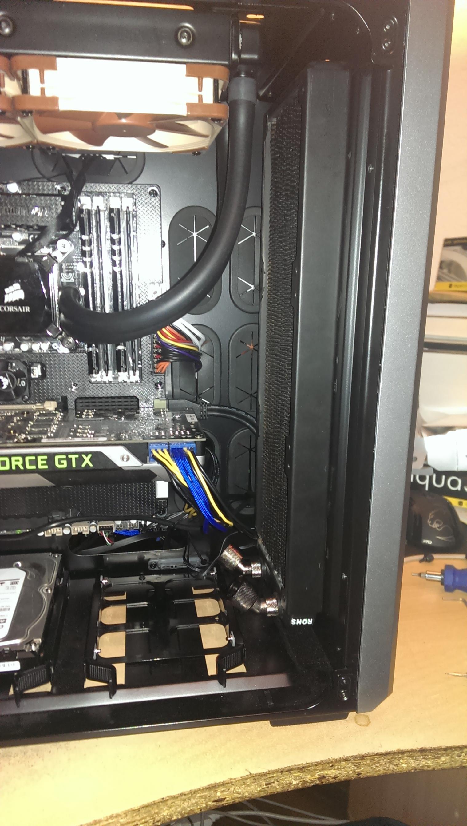 so leider ist mir das mit den Hotswap Einschüben im unteren Gehäuseteil echt zu blöd. Die behindern einfach den vorderen Radi mit den Anschlüssen. Hab mich entschieden die zu entfernen. Muss mir blos noch überlegen wie ich das am besten anstelle und danach den Boden "verschönere"....