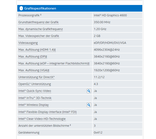 CPU Grafikkarte nicht erkannt (Intel HD 4600)