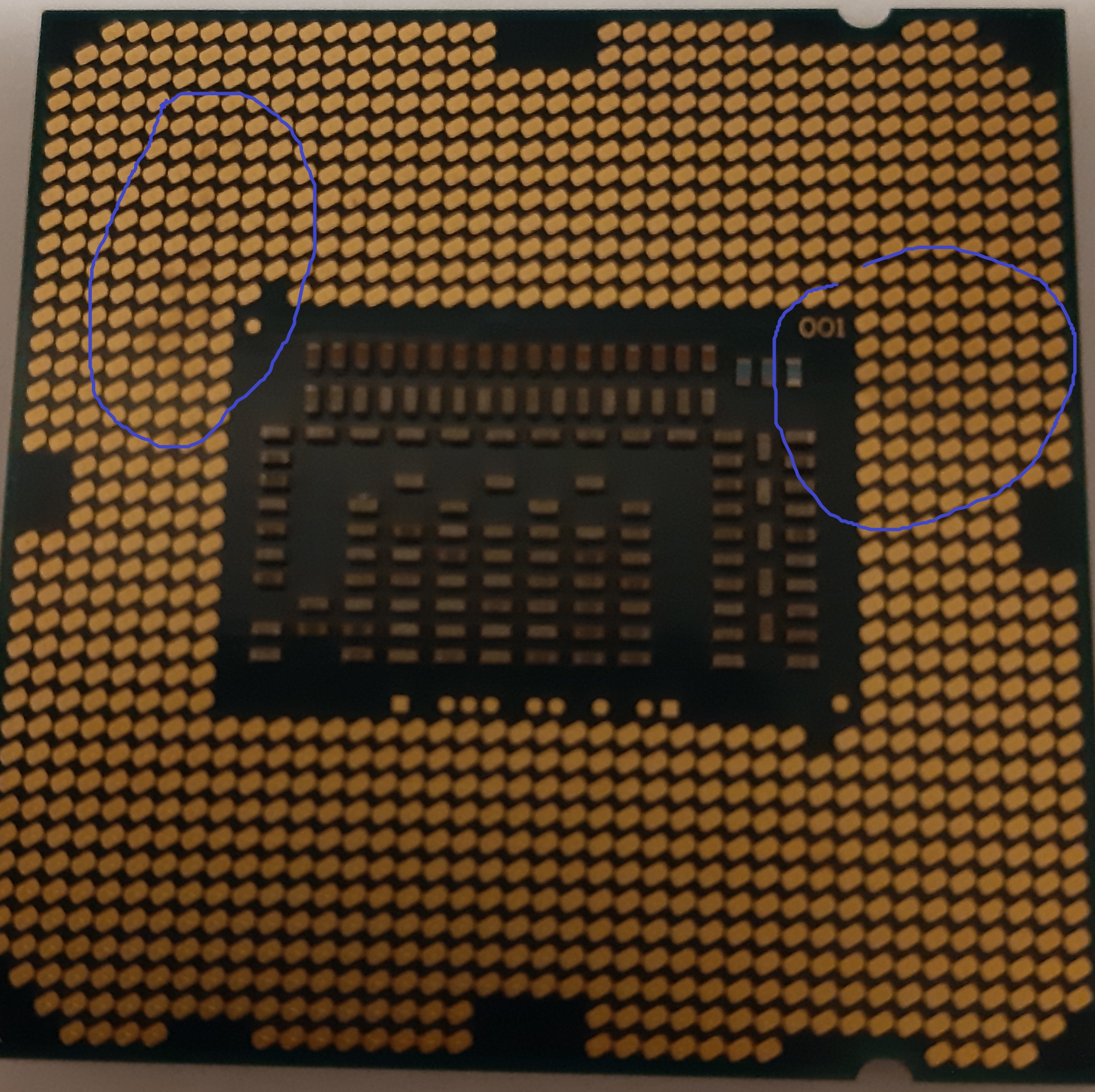 Ich hatte vor rund einer Woche günstig einen gebrauchten i7-3770 gekauft. Der Verkäufer hatte hoch und heilig versprochen, dass die CPU einwandfrei funktionieren würde. Als ich dann zuhause die CPU mir näher angeschaut hatte, habe ich bemerkt, dass die Kontaktseite der CPU Verfärbungen aufweist. Getestet habe ich die CPU bisher nicht.