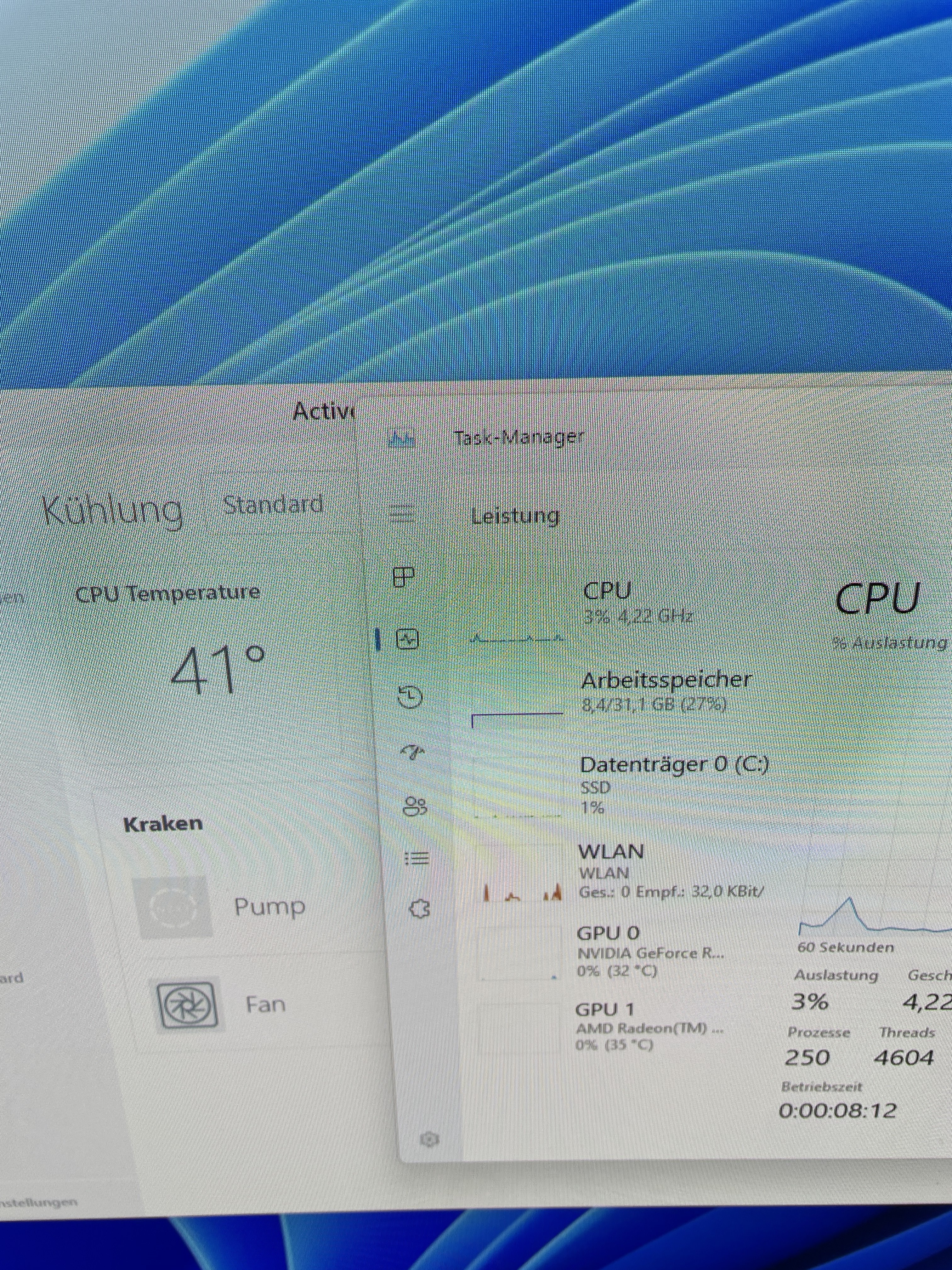 Leider sind die cpu Temperaturen bei normaler Benutzung unter 10% bei 50 Grad was eigentlich nicht so sein sollte. Die Kühler Flüssigkeit bleibt bei 28-29 grad. Die CPU Kühlung wurde richtig verkabelt. Woran kann es liegen. Die Wasserkühlung wurde paar mal gedreht, um das Blasen-Probleme zu beheben(was nicht vorhanden war)Beim Start geht die Temperatur auf bis zu 70grad und wird direkt runter gekühlt. Bei Max Fan Speed geht die Temperatur auch nicht unter 40grad. Dazu beim öffnen eines tabs geht die Temperatur meistens auch nochmal um die 15grad höher direkt. Wärmeleitpaste ist auch frisch und überall gut verteilt