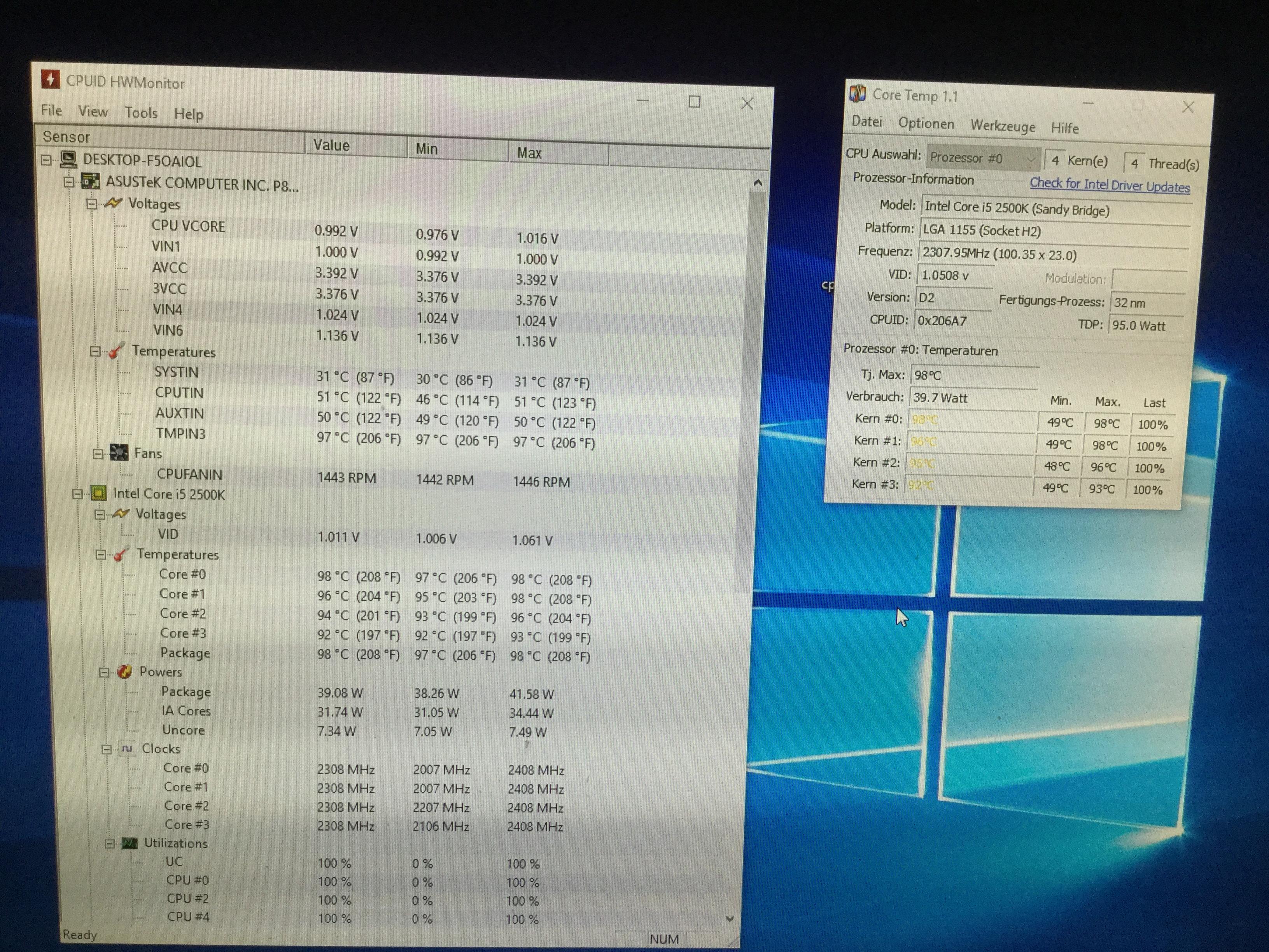 Ich wollte das "alte" und "neue" System vergleichen und dabei ist mir aufgefallen das bei beiden Systemen die CPU Temperatur im Idle bei 63 Grad, unter Vollast (BF4) bei ca 98 Grad liegt - nach meines Wissens ist da viel zu viel!