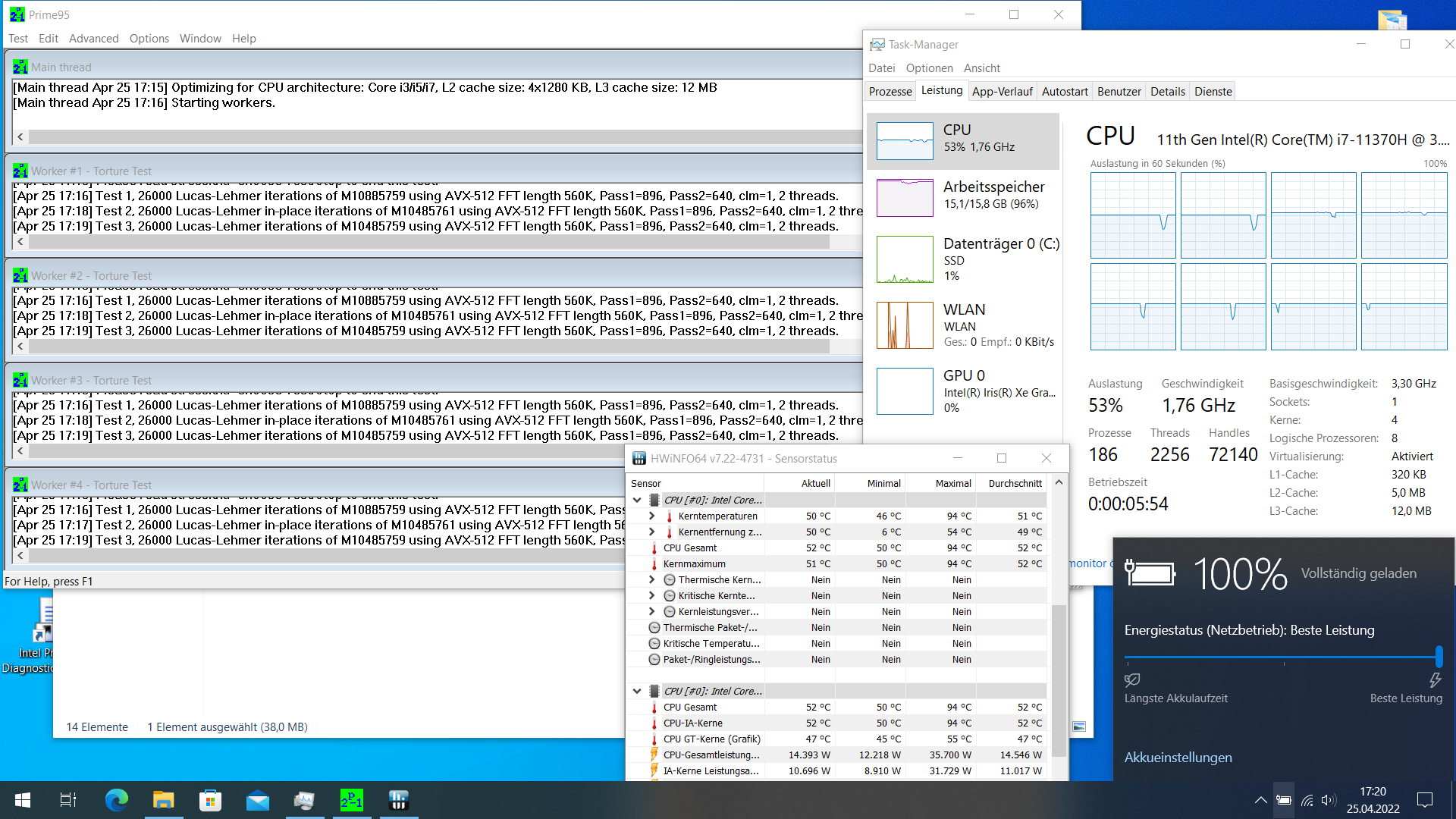 Egal mit welchem Programm, ausprobiert wurden Prime95, CPU-Z, Cinebench und Intel Processor Diagnostic.
