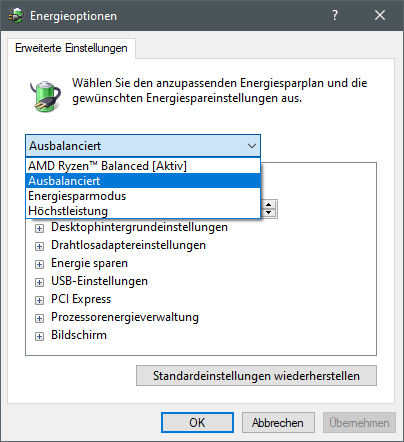 Was passiert wenn du die Energieoption von Ausbalanciert auf Höchstleistung änderst?