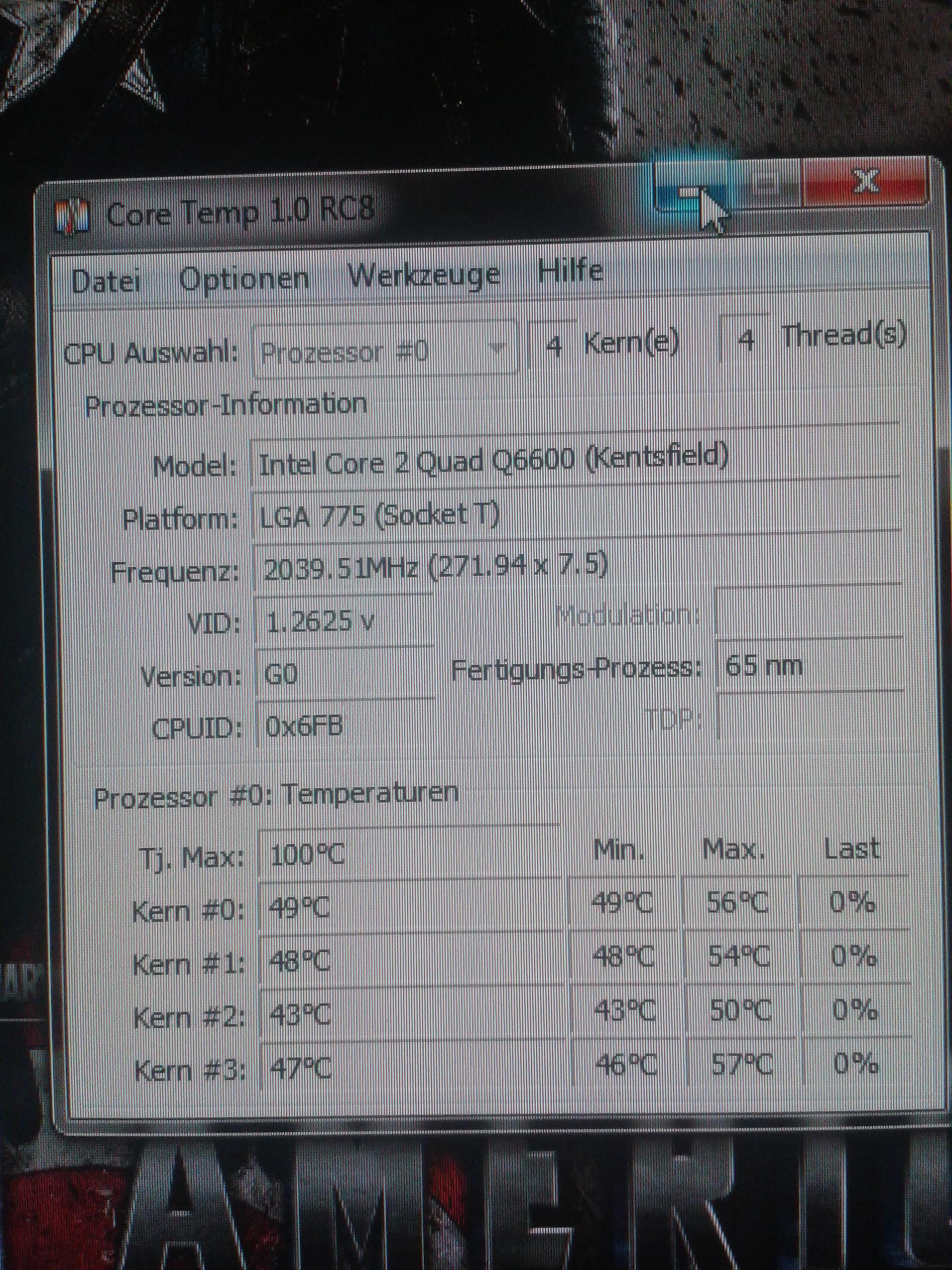 So wie oben beschrieben mein Prozessor ist zu heiß aber der Kühler ist kalt. Der Prozessor erreicht im Leerlauf (im BIOS sowie im Betriebsleerlauf) 50-60°C schwankend. Sobald ich irgendetwas starte zb: Battlefield Bad Company 2, geht die Temperatur auf 75-80°C Hoch (Der Kühler bleibt trozdem kalt) Sobald ich dann im Spiel ne Karte lade und ins Match komme, legt der Alarm los das die CPU zu heiß ist (Angeblich...)und der Piept bis zum Abwinken
