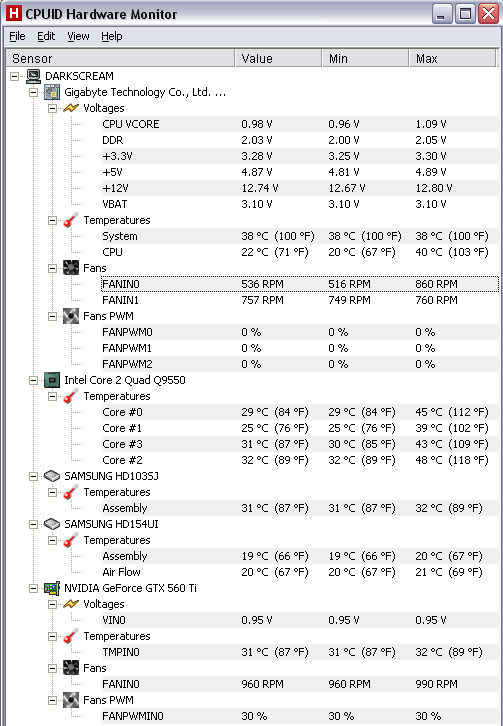 EDIT: dazu kommt, dass viele der Lüfter erst bei 1000rpm loslaufen. Meiner Erfahrung nach ist ein Lüfter erst unter 800-850rpm unhörbar (bzw. der Luftzug!)
