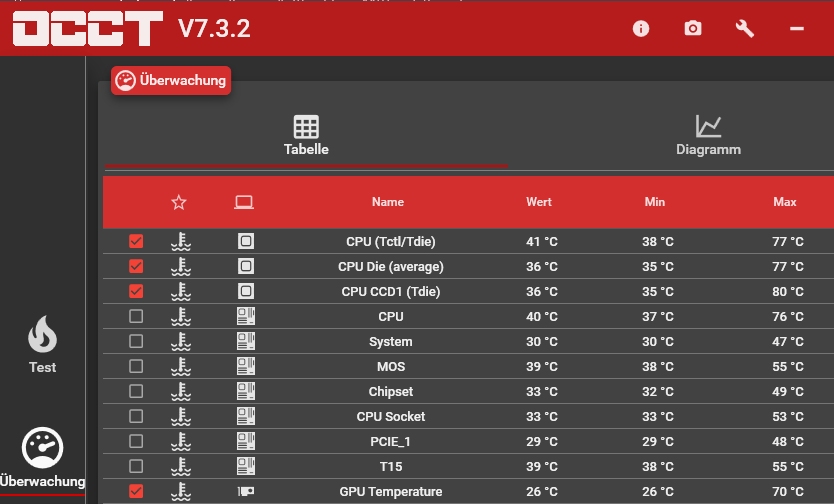 Eine Übersicht über die Temperaturen in meinem Rechner habe ich mal als Screenshots beigefügt, allerdings weiß ich nicht wirklich wem ich da glauben soll. Die Screens sind mit OCCT und HWiNFO erstellt, unterscheiden sich aber drastisch - ist das normal?