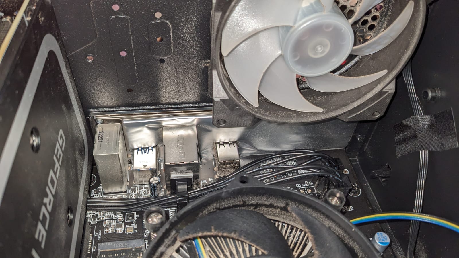 1. PC auseinandergenommen (so weit es ging). Heißt Graka ausgebaut. Mainboard abgeschraubt und ab da hört es auch schon auf.