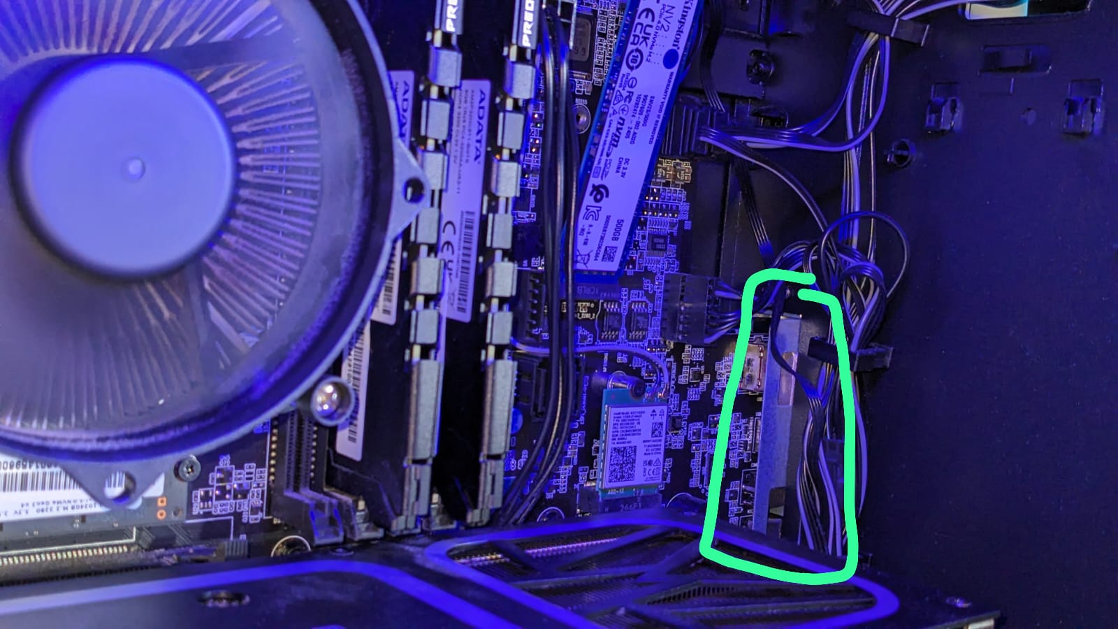 Wie gesagt, ich müsste das ganze Gehäuse auseinander Nehmen, da an der Markierten stelle ein Metallstück eingebaut ist, welches man erst ausbauen muss, damit man das Mainboard da raus bekommt. Ansonsten blockiert es hat das Mainboard