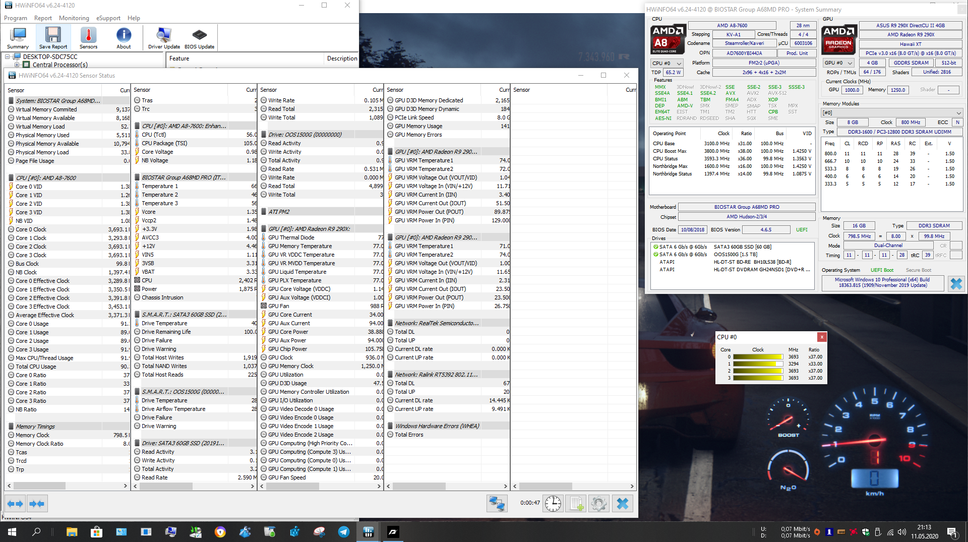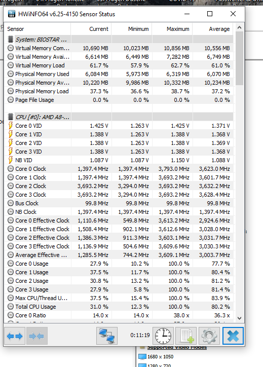 HWinfo64 kostet nix, ist schnell heruntergeladen und liefert hoffentlich fehlerfreie Daten.