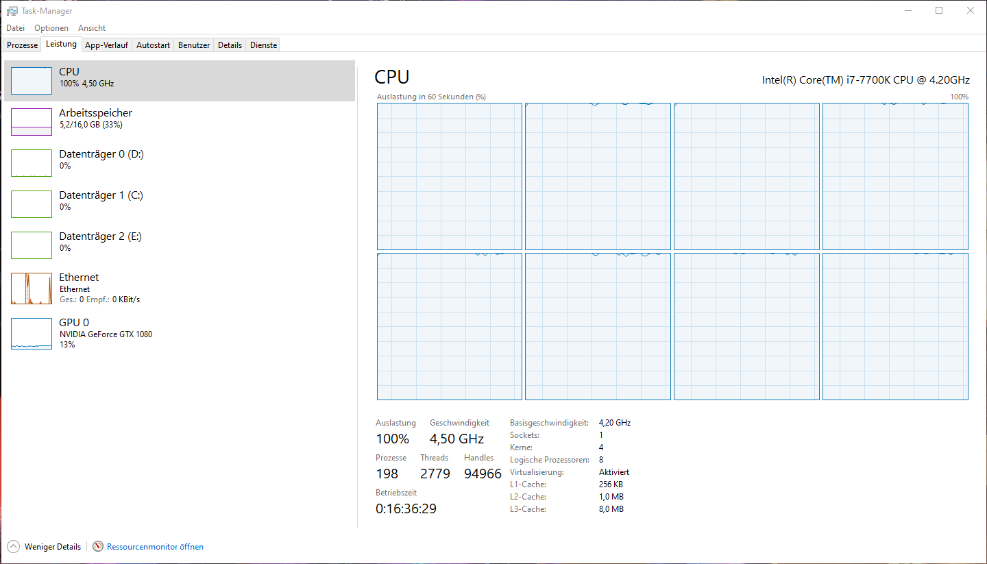 zeit ca. zwei wochen springt meine CPU-Auslastung kurzeitig (ca. für 5min) auf 100%. Ich kann mir nicht erklären warum dies geschieht. Ich habe allerlei ausprobiert um auf den Grund des Problems zu kommen. Den Auslöser habe ich bisher auch nicht gefunden. Was ich aber sagen kann ist folgendes: