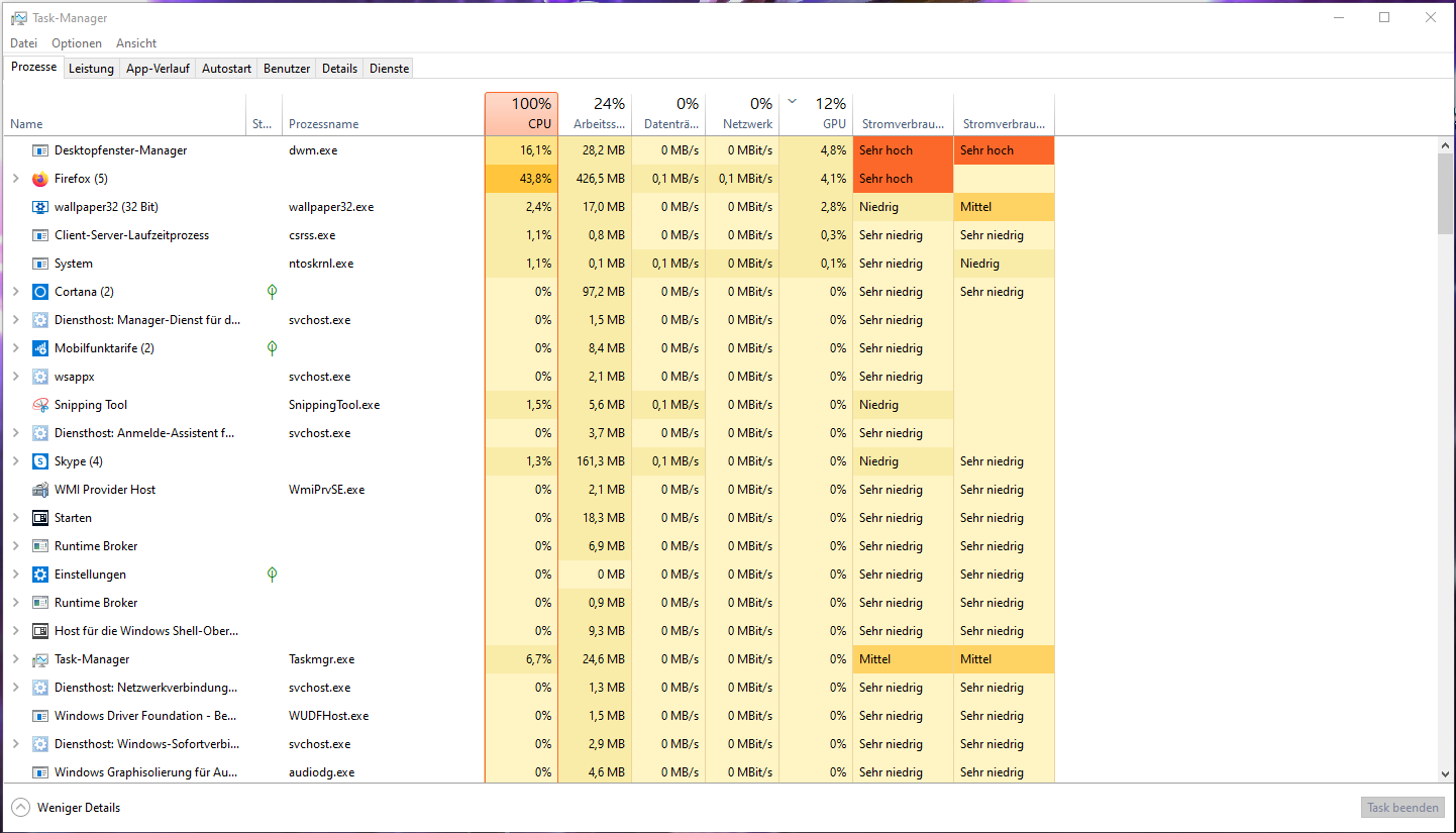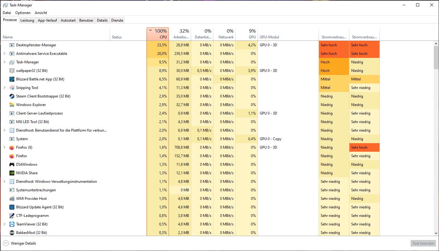 - Mit Taskmanager im Prozesse / Leistungs / Details Tab herauszufenden welche Datei / Programm der Schuldige sein könnte