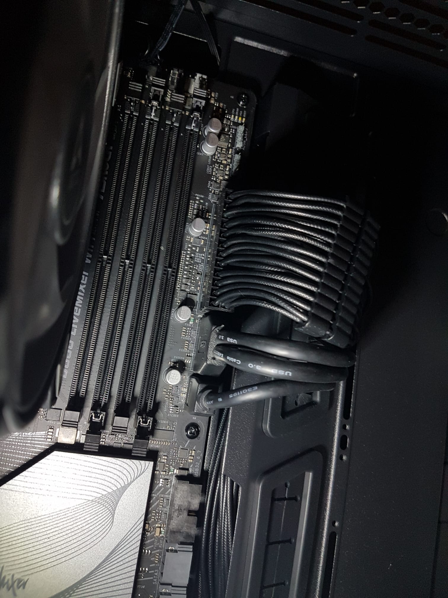 - beide Ram-Riegel entfernt -> DRAM LED leuchtet nicht mehr, CPU-LED weiterhin dauerhaft rot (mit RAM aber bisher nichts mehr weiter unternommen und demontiert gelassen)