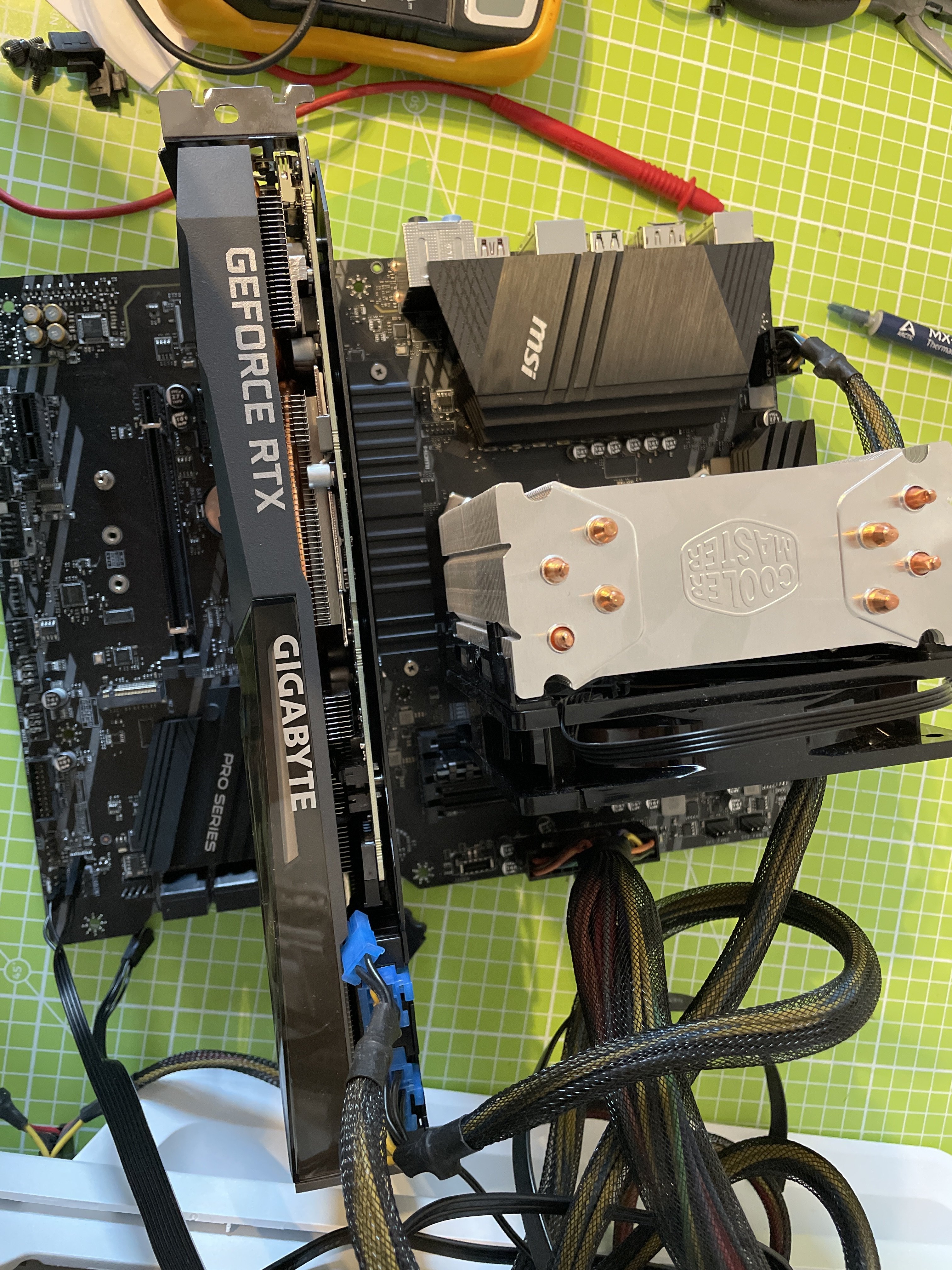 - Nullmethode mit Mainboard CPU Ram und Netzteil auf dem Schreibtisch