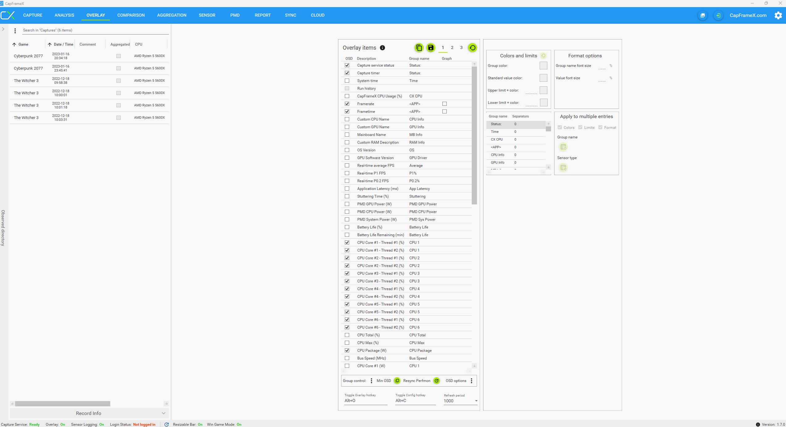 Du kannst auch mal mit CapFrameX gucken was die CPU macht, wenn wieder die besagten Aussetzer auftreten. Dafür muss das overlay aktiviert sein mit den ensprechenden Sensorwerten von der CPU.