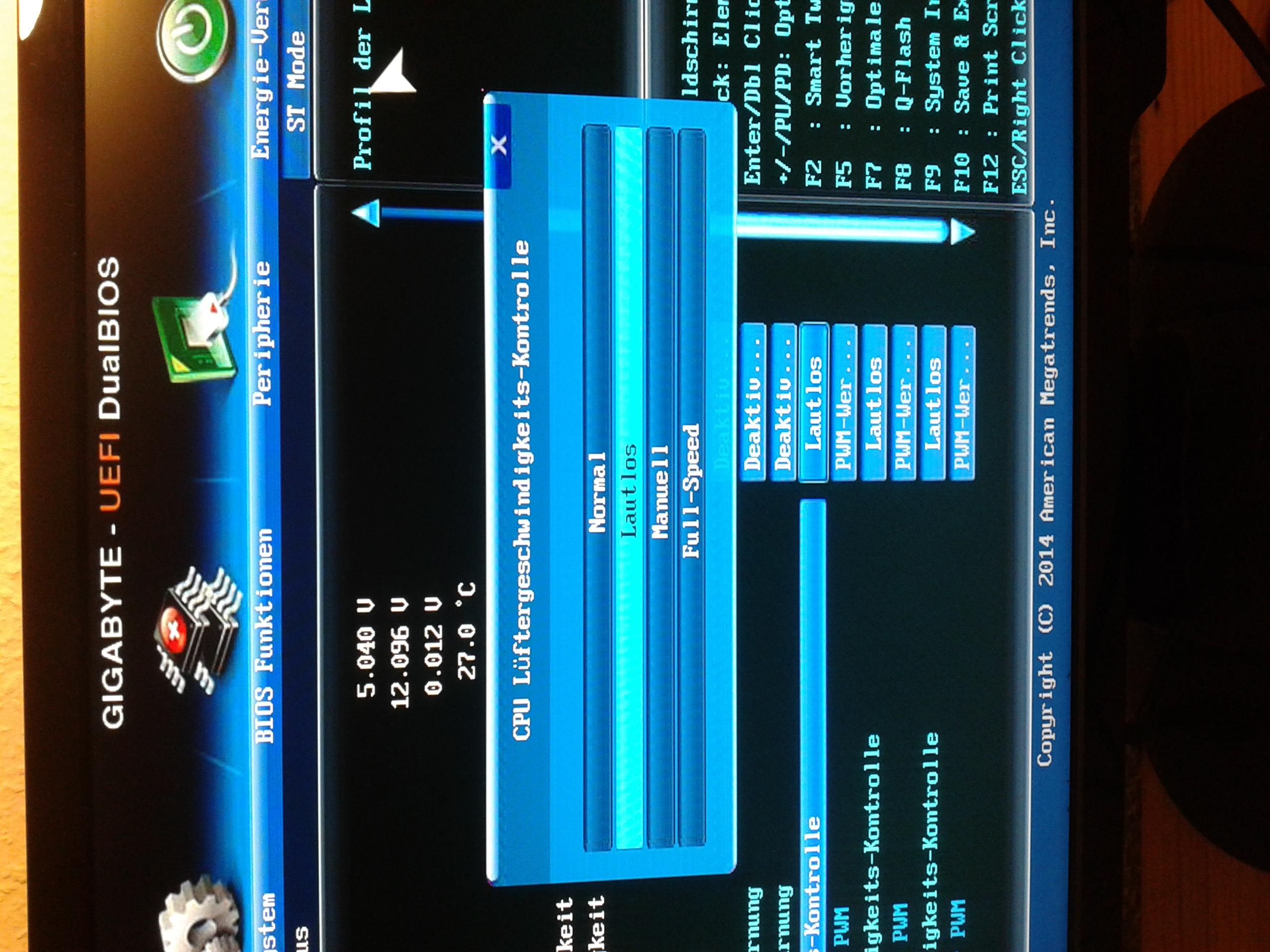 Habe mir einen leisen Lüfter und ein leises Netzteil als "Sonderausstattung" ausgesucht. Es sind insgesamt nur 2 Lüfter. Netzteil und CPU. Leider läuft der CPU Lüfter immer 100%. Stelle ich ihn bei Speed Fan auf 50% zurück, nach dem nächsten Neustart läuft er immer wieder zu 100%.