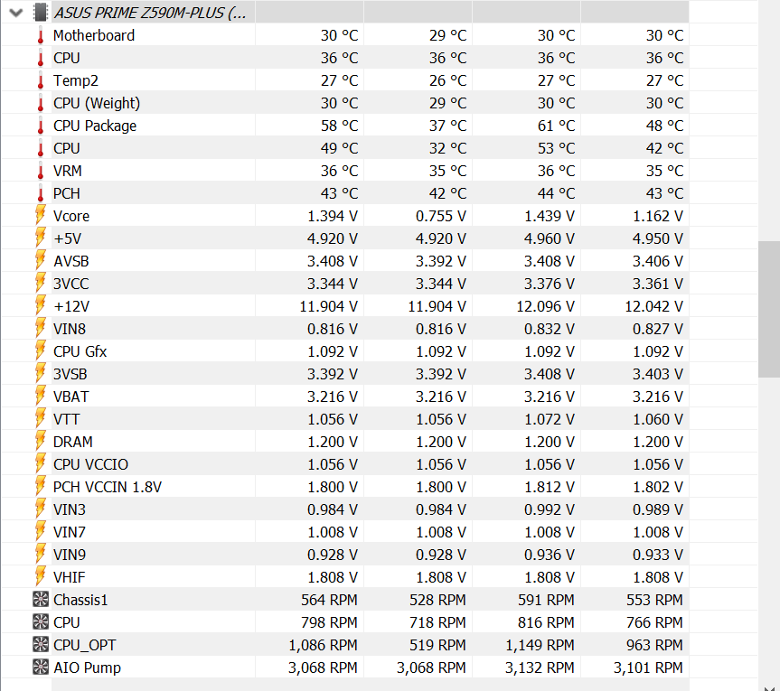 ich habe das Problem, dass ab und zu bei normaler Desktop-Nutzung der CPU-Lüfter ganz kurz beschleunigt. Ich dachte erst, dass sei ein Uptick in der Temperatur, weswegen dann die Beschleunigung aktiviert wird. Ich habe dann die Temperaturen beobachtet und geschaut, inwiefern es Upticks gibt. Ich habe dann die Temperatur-Kurve so eingestellt, dass Beschleunigungen nicht mehr eintreten sollten. Es passierte aber weiterhin und ich habe mit SpeedFan mal geschaut, was genau die einzelnen Lüfter machen und musste feststellen, dass es keine Beschleunigung im Sinne eines Aufdrehens über Normalwert ist, sondern dass der CPU-Lüfter einfach aus dem Nichts einfach 40% runterdreht, um dann zurück auf die normale Durchschnitts-RPM zurückzukommen. Bei dieser Rückkehr zum Normalwert beschleunigt er einmal kurz und macht dann das nervige Sauggeräusch, um dann wieder innerhalb einer Sekunde wieder ruhig zu laufen.