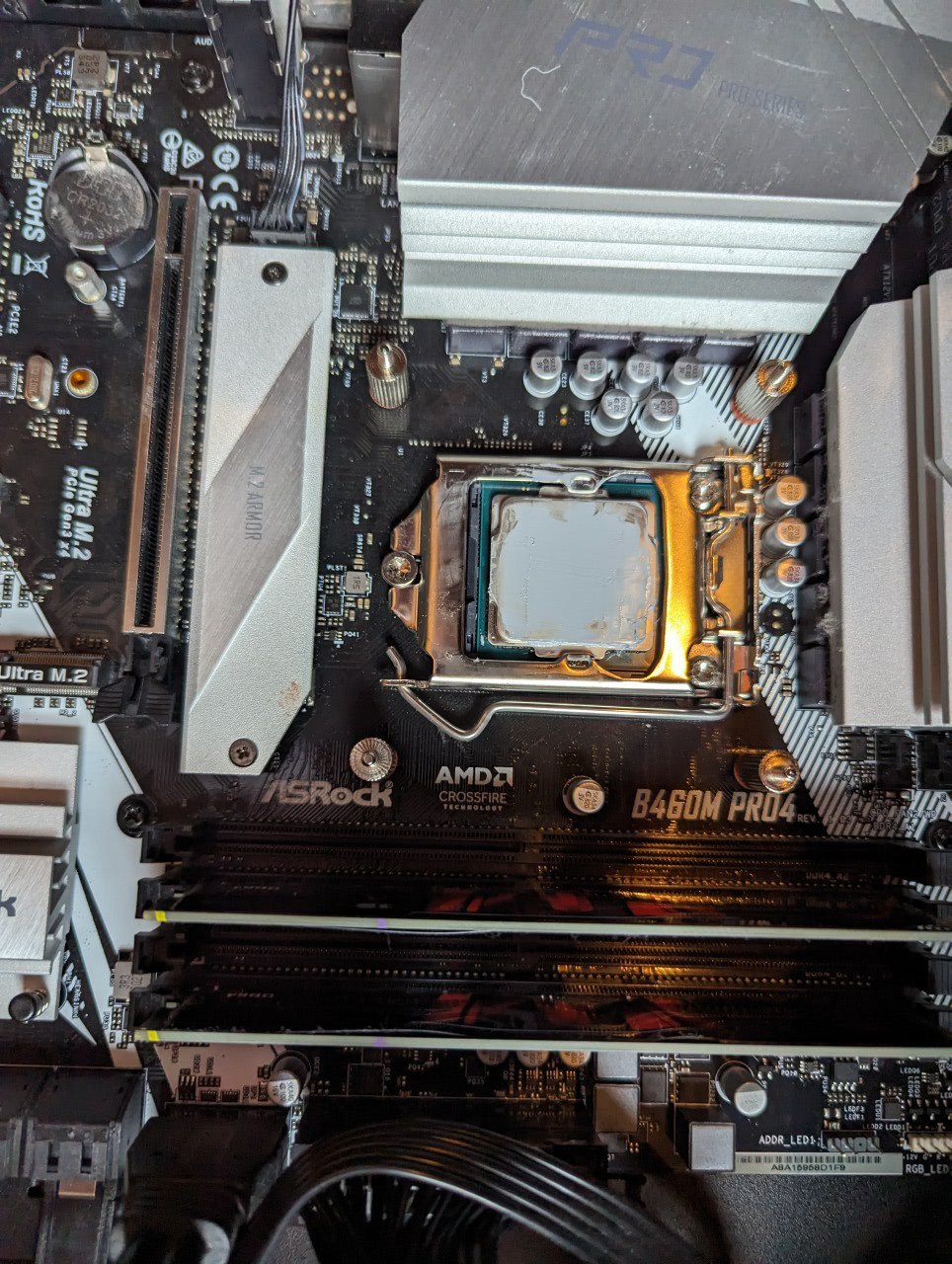 Die WLP hab ich wie immer aufgetarge, Klecks in die Mitte der CPU, mit einer alten Plastikkarte bischen zu den Rändern, Ränder wohl frei, statt mehr drauf für die Ränder ging ich wie immer davon aus dass sich durch den Anpressdruck das schon noch zum Rand hin ausbreitet.