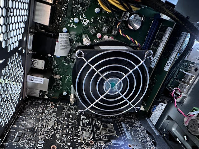 Es ist ein Xeon Prozessor mit eine LGA 1151 Sockel; ich nutze den Rechner aber aktuell nur für Office und Videocalls, die Last dürfte also eher gering sein. Die Höhe vom Mainboard bis zum Gehäuse sind ca. 16 cm, vom Anfang der Lüfterlamellen bis zum Gehäuse ca. 15 cm.