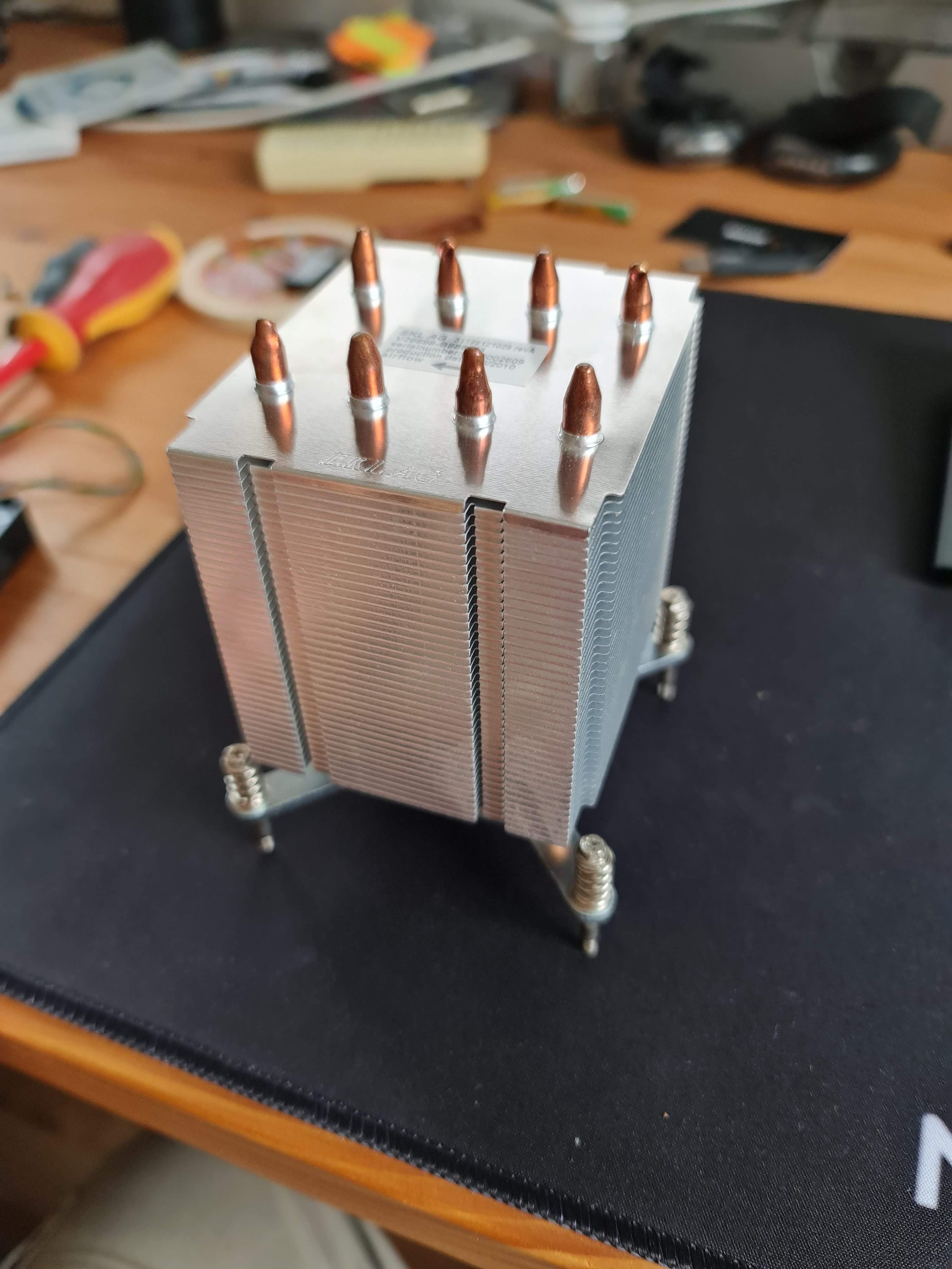 Hallo zusammen, ich habe hier eine alte Workstation wo ein Passiver CPU Kühler montiert ist, der nur durch Plaste Leitbleche so im Luftstrom des Gehäuse Lüfters platziert ist, das er einigermaßen kühlt. Die Temperaturen sind Grausam aber im Rahmen der Limits der CPU.