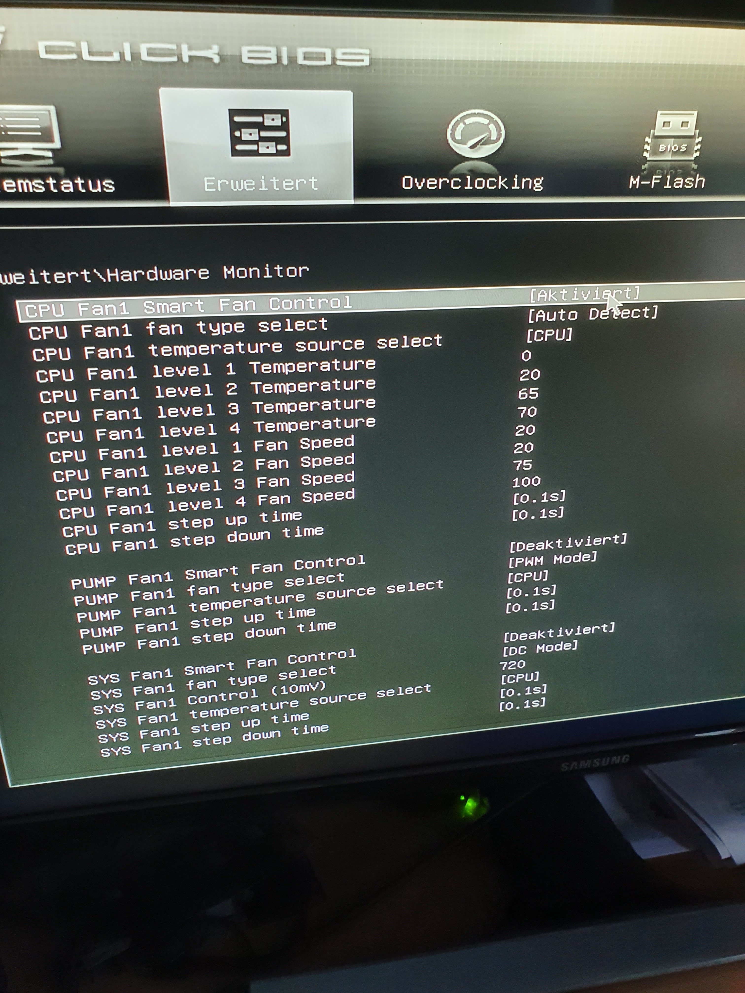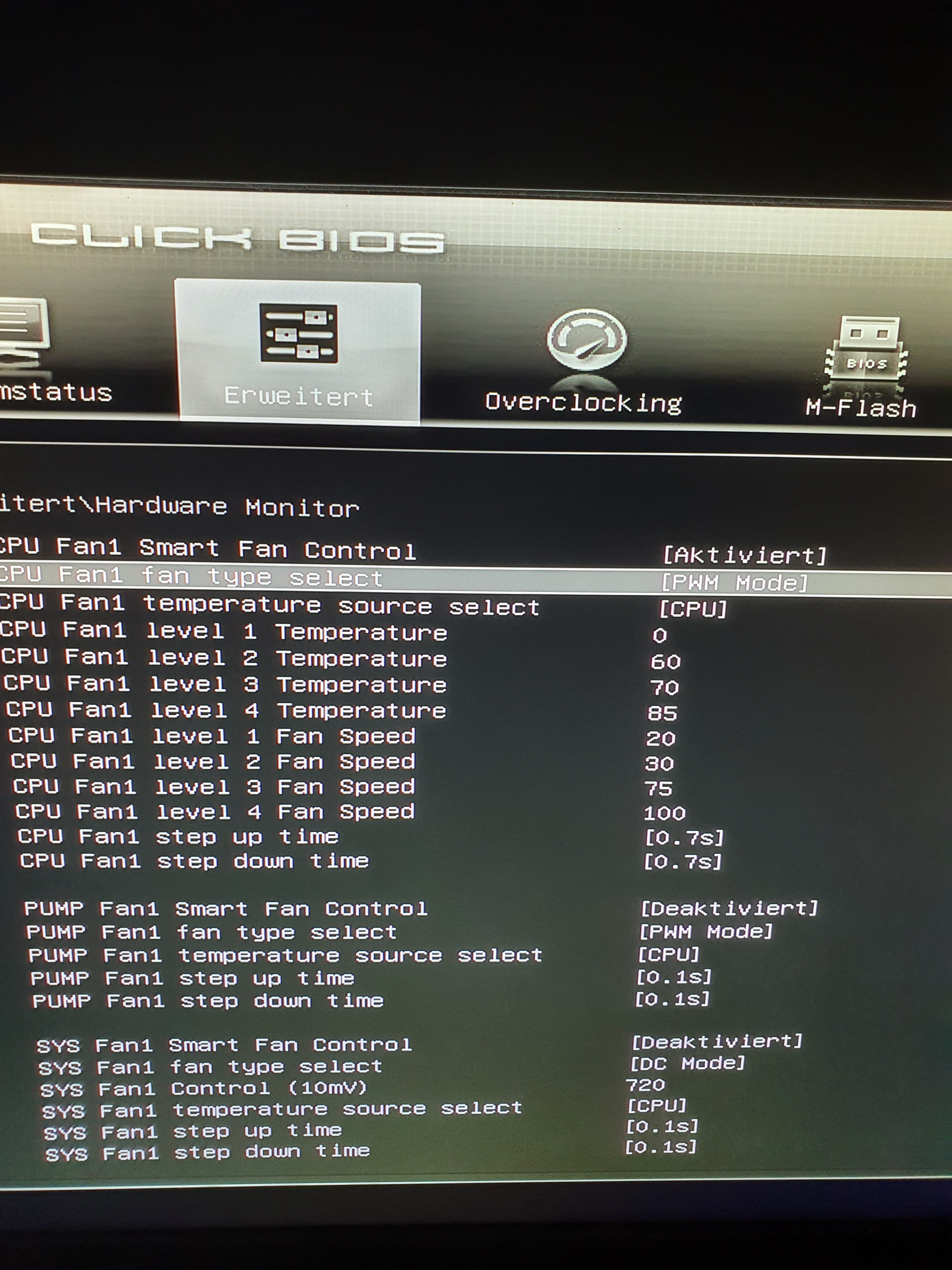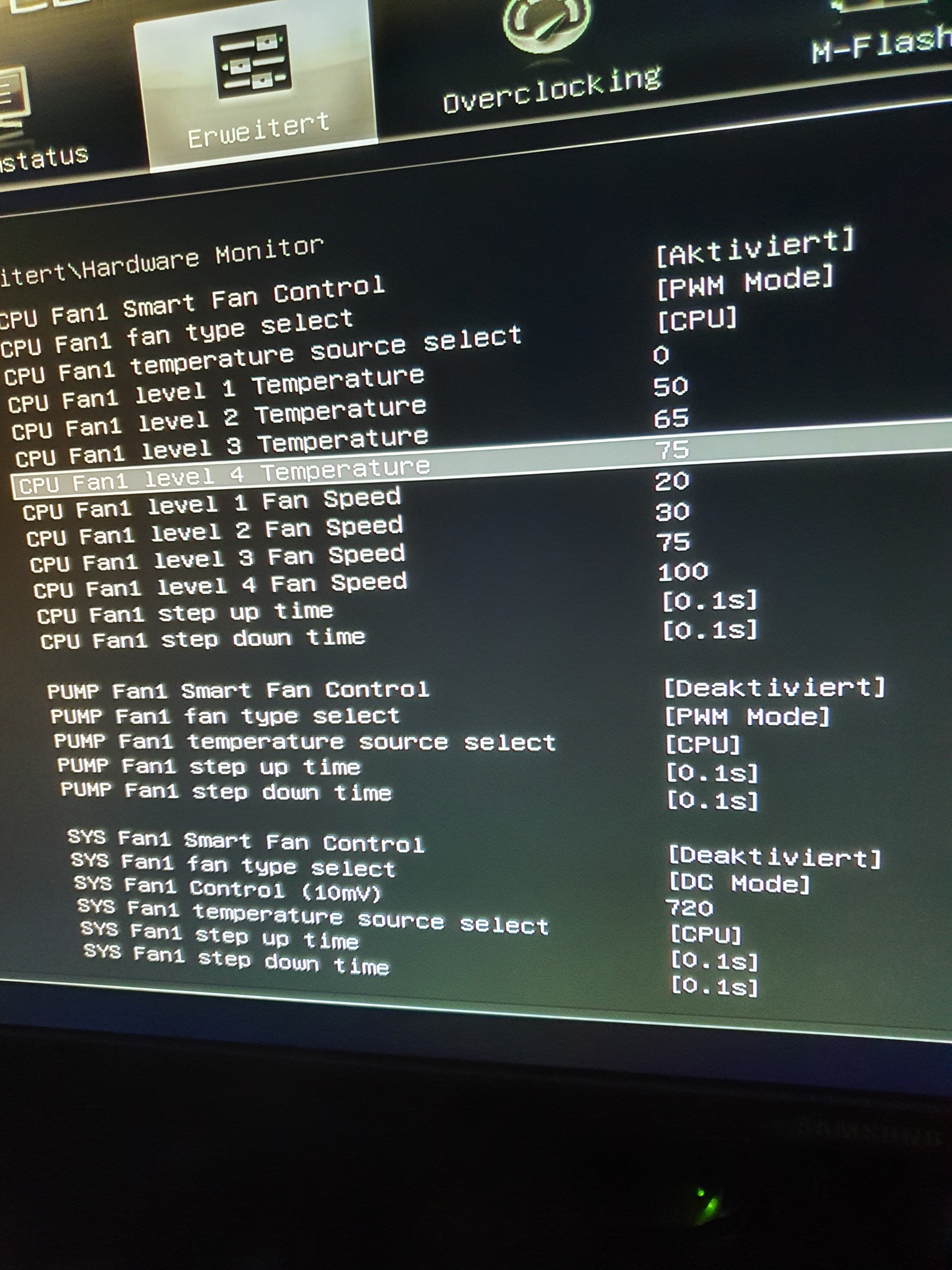 Ohne den Rechner zu kennen würde ich für Level 4 eine höhere Temp wählen, 75° sind für max. Drehzahl zu niedrig, Gilt auch für die anderen Temps. Die 100% Drehzahl würde ich eher ab 85" oder 90° nehmen.