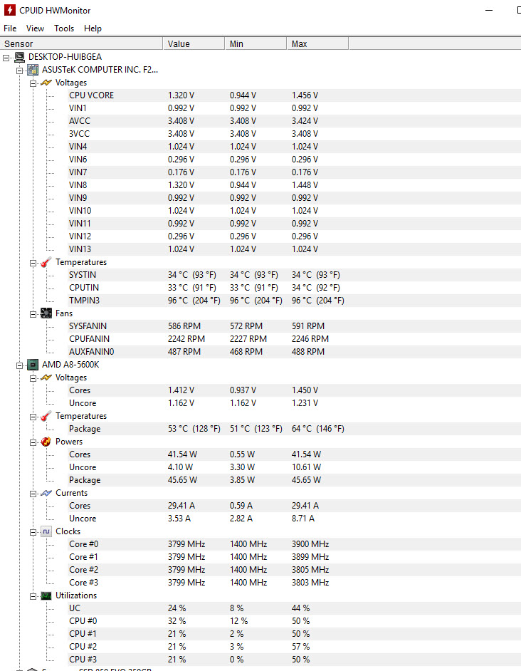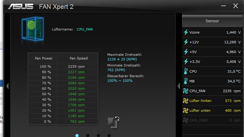 Das gleiche unter Windows, egal ob Speedfan oder Gigabyte System Information Viewer: Die Gehäuselüfter lassen sich regeln, der CPU-Lüfter aber nicht (konstant 2000rpm). Das Gigabyte-Tool kann auch irgendwie Lüfter kalibrieren, und er hat für die beiden Gehäuselüfter auch Werte von 0 bis ca. 2000rpm gefunden. CPU allerdings immer auf 2000....