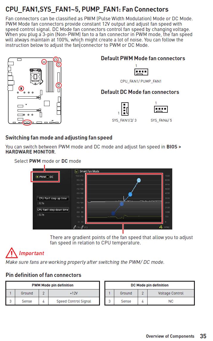 Mein Lüfter ist am CPU-FAN1 angeschlossen. Lt. UEFI ist dort der PWM-Modus eingstellt. Ich habe gelesen, dass im PWM-Modus der Lüfter automatisch vom Mb gesteuert wird. Der DC-Modus steuert den Lüfter über die Spannung. Sobald ich CPU-FAN1 auf DC umstelle läuft der Lüfter nicht mehr - er schaltet sich ab. Ich kann in dem Click Bios von MSI nicht sehen, dass man dort irgendwo die Spannung einstellen kann. Wie macht man das?