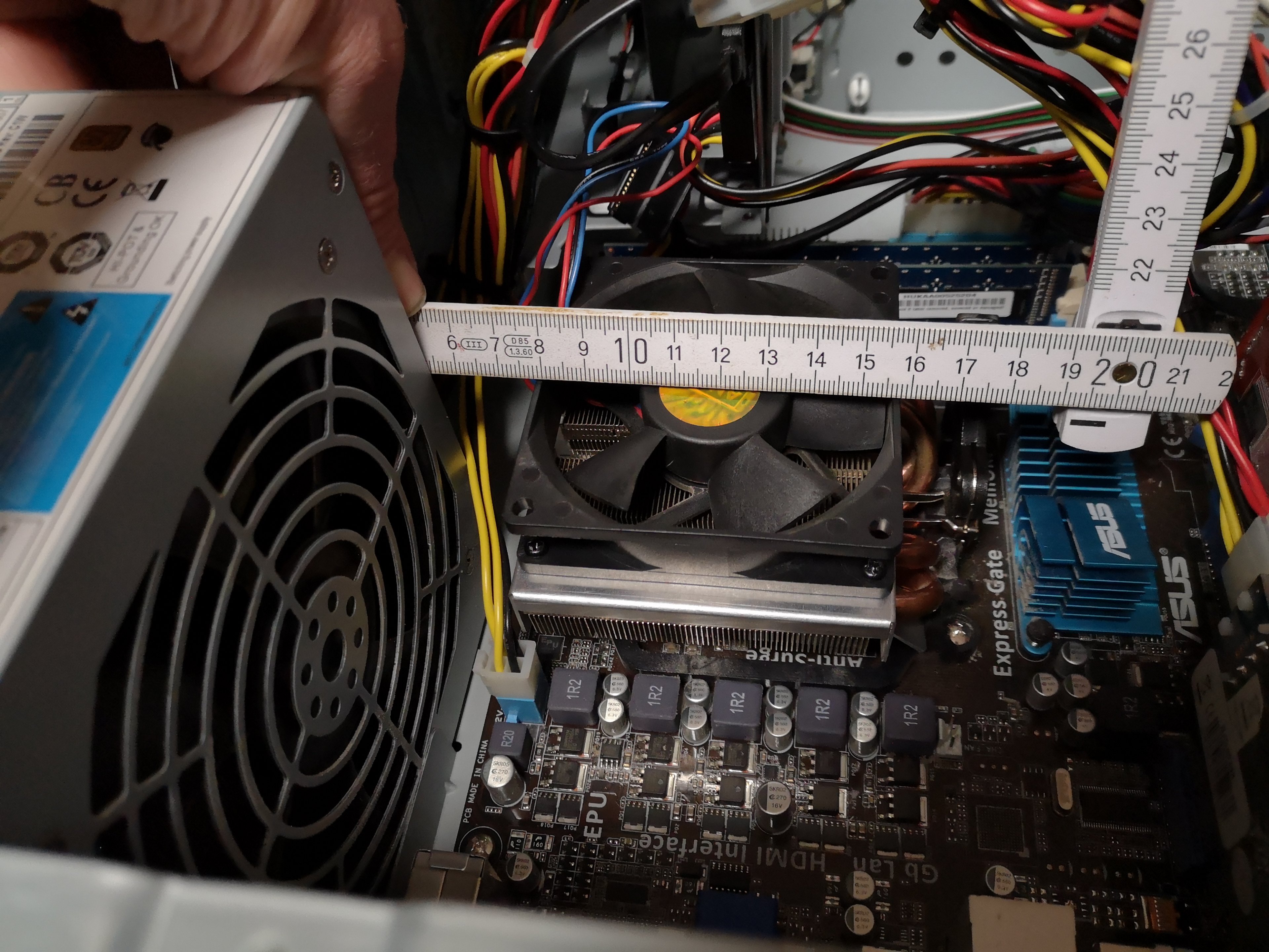 Hab mal gemessen, komme auf ca. 77mm. Passt dein ein 80mm Lüfter, den du verlinkt hast?